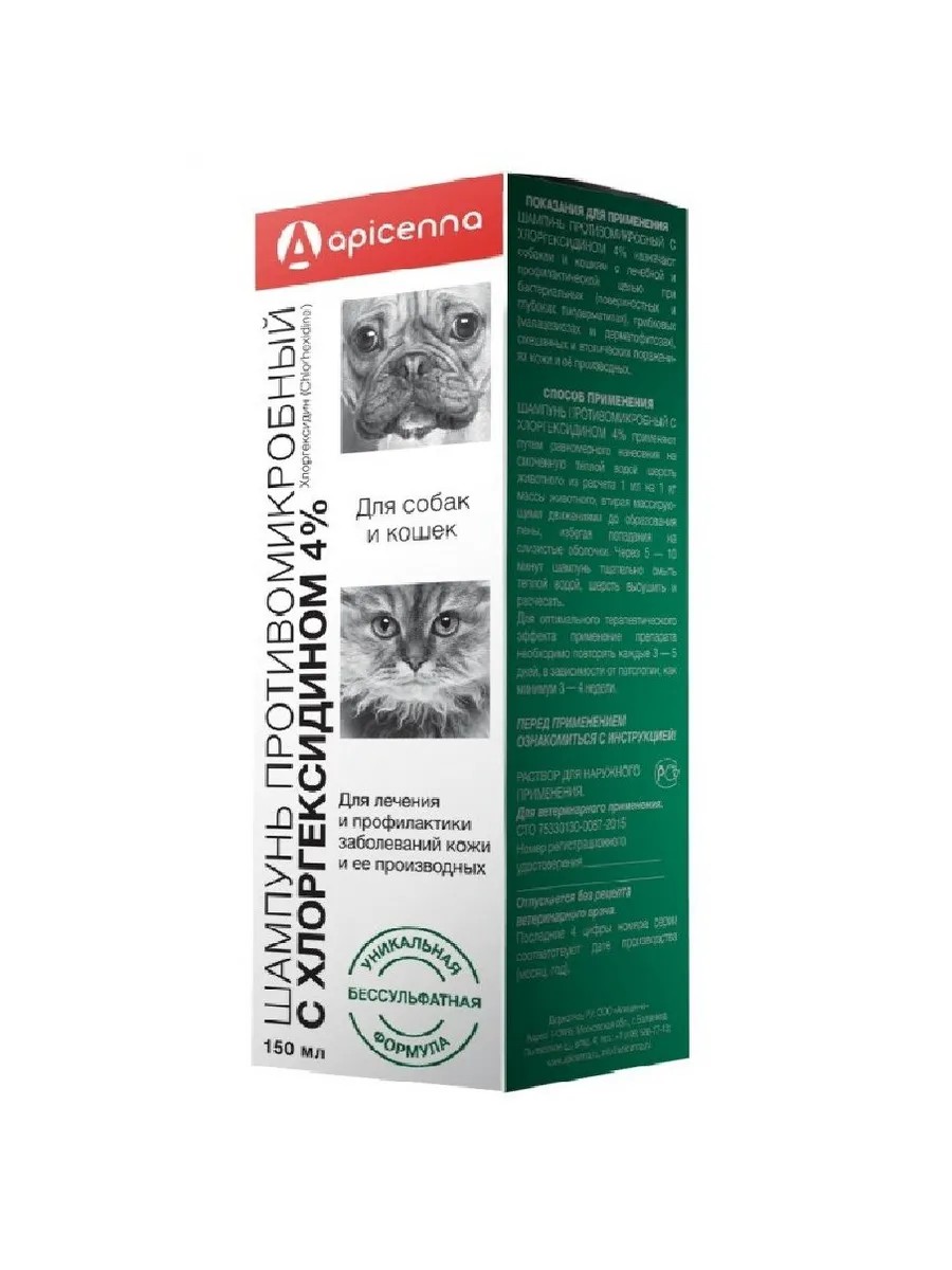 apicenna Шампунь для собак и кошек, с хлоргексидином 4%, 150 мл