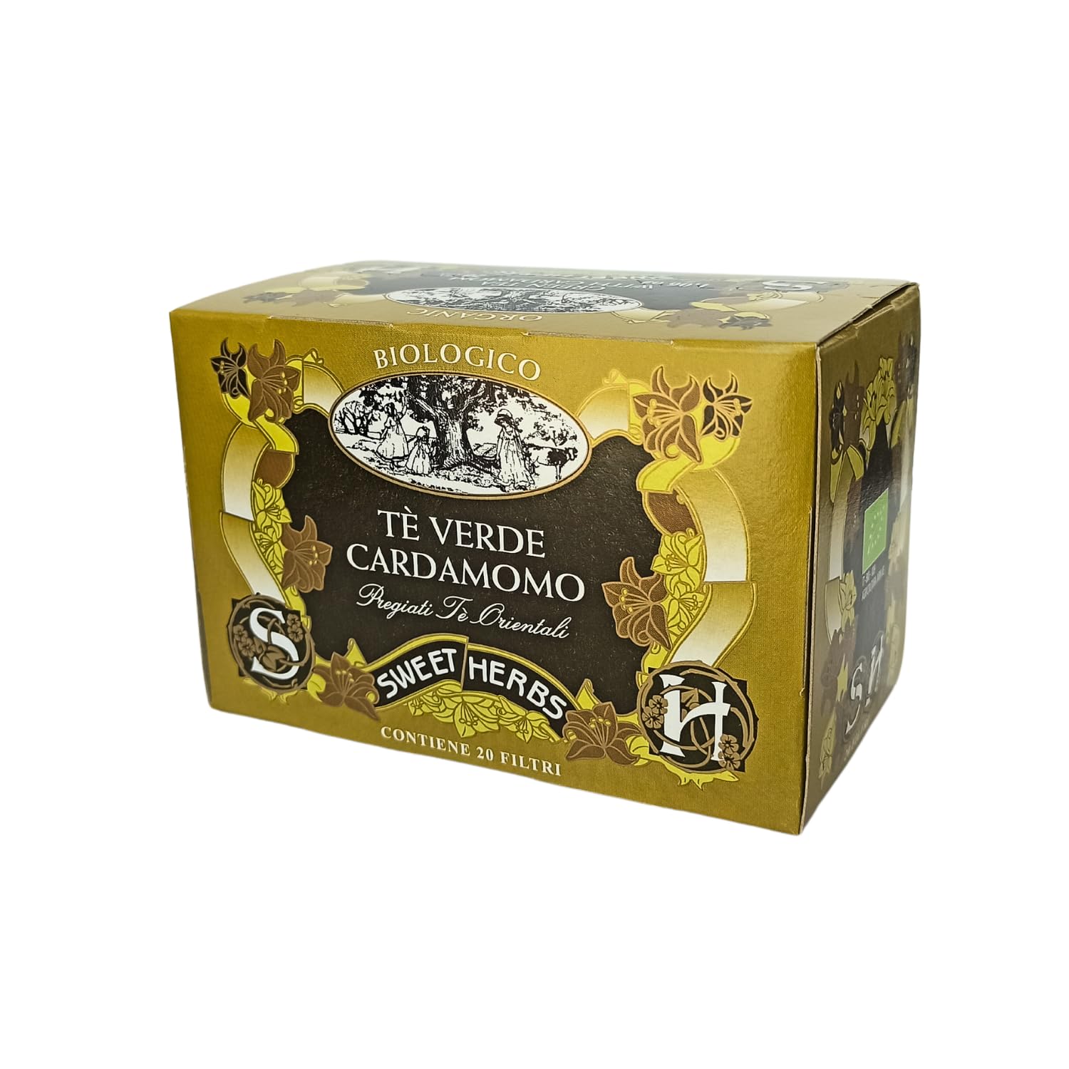 SWEET HERBS In our products, we infuse the same passion that Nonno Gervasio passed on to us for his bees. A love for a wonderful and bountiful land, the innovative spirit of the people of the Langhe and Roero regions, and absolute respect for raw materials. Our products are ambassadors of an extraordinary territory to which we are proud to belong. Roero is a mosaic of experiences, landscapes, and centuries-old traditions. A land rich in superlative raw materials and gifts of nature: honey, which finds expressions of absolute quality here vines and wine, famous throughout the world truffles, the diamond of the earth and vegetables and fruits with incomparable flavors. A place where nature and humankind have formed an inseparable alliance, dedicated to excellence. "Green Tea and Cardamom": Box containing individually wrapped organic green tea and cardamom tea bags (20 bags - 30 grams). Produced in Italy. [FAMILY-RUN] - Our specialties are mindful of local sourcing and typicality, without ever compromising on quality or respect for the environment and raw materials. A family business that, for three generations, has passed down the passion for craftsmanship, using both hands, mind, and heart. [COMPANY-WIDE] - From honey to quality food ideas, the Sweet Herbs range of teas and herbal infusions is synonymous with nature, taste, and authenticity. The company has a history of loyalty to nature, the land, research, and product innovation. [PRODUCTS] - The teas and herbal infusions in the Sweet Herbs range are entirely organic, made directly from raw materials, GMO-free, and sourced from selected and certified farms. The innovative drying system keeps the cell membranes of the herbs intact, thus preserving their active ingredients, aroma, and fragrance. [STORAGE] - Energy-saving bag. INGREDIENTS Green tea 80 , cardamom 20 .Sweet Herbs Thé vert biologique et cardamome Thé vert oriental épicé digestif - 20 filtres en sachets individuels (30 Gr)DESCRIPTION DU PRODUIT DESCRIPTION DU PRODUIT SWEET HERBS Dans nos produits, nous insufflons la même passion que nous a transmise Nonno Gervasio pour ses abeilles. L'amour pour une terre merveilleuse et riche, la capacité d'innover des habitants des Langhe et du Roero, le respect absolu des matières premières. Nos produits sont les ambassadeurs d'un territoire extraordinaire auquel nous sommes fiers d'appartenir. ROERO est une mosaïque d'expériences, de paysages et de traditions séculaires. Une terre riche en matières premières superlatives et en dons de la nature : le miel, qui trouve ici des expressions de qualité absolue, la vigne et le vin, célèbres dans le monde entier, les truffes, diamant de la terre, les légumes et les fruits aux saveurs incomparables. Le lieu où la nature et l'homme ont formé une alliance indissociable, dédiée à l'excellence. "Thé Vert et Cardamome" : étui contenant à l'intérieur des filtres de thé vert biologique et de cardamome, chacun emballé individuellement (20 sachets - 30 grammes). Produit en Italie. [FAMILIAIRE] - Nos spécialités sont attentives à la territorialité et à la typicité, sans jamais faire de compromis sur la qualité et le respect de l'environnement et des matières premières. Entreprise familiale qui depuis trois générations transmet le goût du travail fait avec les mains, avec la tête, avec le cœur. [EN ENTREPRISE] - Du miel aux idées alimentaires de qualité, la gamme de thés et tisanes Sweet Herbs est synonyme de nature, de goût, d'authenticité. L'entreprise a une histoire de fidélité à la nature, au territoire, à la recherche et à l'innovation de produits. [PRODUITS] - Les thés et tisanes de la gamme Sweet Herbs sont totalement biologiques, issus directement des matières premières, sans OGM et provenant de fermes sélectionnées et certifiées. Le système de séchage innovant permet de conserver intacte la membrane cellulaire des herbes, préservant ainsi leurs principes actifs, leur arôme et leur parfum. [CONSERVATION] - Sachet économiseu. INGRÉDIENTS Thé vert 80 , cardamome 20 .