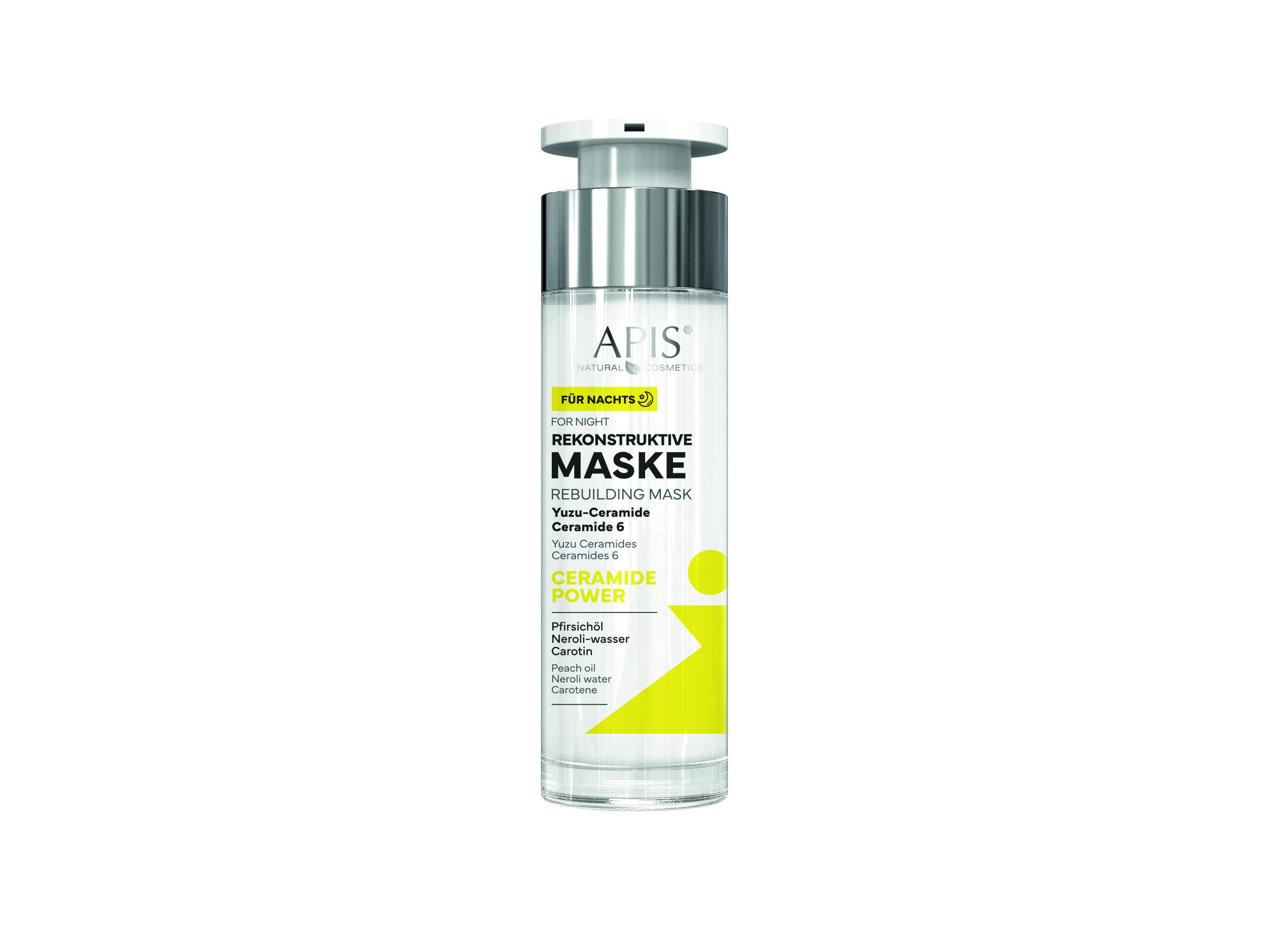 The ceramide 6 hidden in modern carriers in combination with vegetable yuzu ceramides reaches the deepest layers of the epidermis, where they rebuild the natural hydrolipidic coat and improve moisture content. Enriched with peach oil, shea butter, carrots, organic neroli water and passion fruit extract, the mask is intensively regenerated overnight. The versatile effect leaves your skin soft, supple and restored after waking up.For dry, sensitive and tired skin: ideal for skin types seeking moisture, regeneration and protection, also suitable for sensitive, dull or stressed skin. Carefully developed for intensive nighttime care. Fresh and balanced overnight: organic neroli hydrolate and carotene promote collagen production, improve skin tone and provide a radiantly fresh, relaxed skin feeling in the morning. Rich care through natural oils and butters: peach kernel oil, shea butter and maracuja extract intensively nourish the skin, have a revitalizing effect, provide new suppleness and reduce dryness. Long-lasting moisture and anti-aging: the innovative formula blocks moisture loss, noticeably improves smoothness and elasticity, reduces wrinkles and protects against harmful environmental influences. Intensive regeneration and building of the skin barrier: Ceramide 6 and Yuzu ceramide penetrate deep into the skin, strengthen the natural protective barrier and ensure elastic, plump and optimally hydrated skin at night.Apis Ceramide Power Opbouwend gezichtsmasker voor de nacht, 50 ml, met ceramiden, hyaluronzuur en squalaan regenererend, gladmakend, voorkomt uitdroging De in moderne dragers verborgen ceramide 6 in combinatie met plantaardige yuzu-ceramiden bereiken de diepste lagen van de epidermis, waar ze de natuurlijke hydrolipidemantel weer opbouwen en het vochtgehalte verbeteren. Verrijkt met perzikolie, sheaboter, wortelen, biologisch neroliwater en passievruchtextract, wordt het masker 's nachts intensief geregenereerd. Het veelzijdige effect maakt je huid na het ontwaken zacht, soepel en hersteld.Voor droge, gevoelige en vermoeide huid: ideaal voor huidtypes die vocht, regeneratie en bescherming zoeken, ook geschikt voor de gevoelige, vale of gestreste huid. Zorgvuldig ontwikkeld voor de intensieve nachtelijke verzorging. Fris en uitgebalanceerd gedurende de nacht: biologisch neroli-hydrolaat en caroteen bevorderen de collageenproductie, verbeteren de huidtint en zorgen voor een stralend fris, ontspannen huidgevoel in de ochtend. Rijke verzorging door natuurlijke oliën en boters: perzikpitolie, sheaboter en maracuja-extract voeden de huid intensief, werken revitaliserend, geven nieuwe soepelheid en verminderen droogheid. Langdurige vochtigheid en anti-aging: de innovatieve formule blokkeert vochtverlies, verbetert merkbaar gladheid en elasticiteit, vermindert rimpels en beschermt tegen schadelijke milieu-invloeden. Intensieve regeneratie en opbouw van de huidbarrière: Ceramide 6 en Yuzu-ceramide dringen diep in de huid door, versterken de natuurlijke beschermende barrière en zorgen 's nachts voor een elastische, mollige en optimaal gehydrateerde huid.