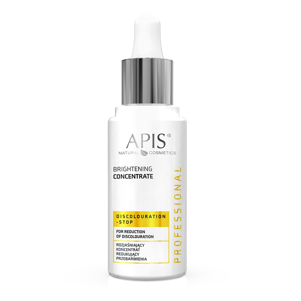 The Discoloration-STOP line: An innovative system for lightening dark spots. INGREDIENTS Concentrate, Essence, Face, Nourishing, Moisturizing, Improvement, Skin, Color, Structure, Fresh, Health, Appearance, Coloration, Pigment, Interference, Need, Lightening, Highly Concentrated, Natural, Complex, Melavoide, Darkout, Cucumber Extract, Grapefruit, Silk, Protein, Hyaluronic Acid, Lemon, Ceramide, D-Panthenol, Coconut, Oil, AlgaeTip: For skin with discoloration and pigmentation problems that need brightening. Skin tone: Ensures even skin tone and a fresh, healthy appearance. Moisturizing: Intensely reduces and brightens dark spots, discoloration, and other age-related pigmentation issues. Reduction: Intensely reduces and brightens dark spots, discoloration, and other age-related pigmentation issues. Rich formula: An essence with active components and natural complexes of melavoid and darkout, cucumber extract, grapefruit, algae, panthenol, and coconut oil.APIS DISCOLOURATION-STOP Concentré éclaircissant pour le visage contre la décoloration avec des algues, des concombres et du pamplemousse Soin du visage, éclaircissement des décolorations 30 mlDESCRIPTION DU PRODUIT DESCRIPTION DU PRODUIT La ligne Discoluration-STOP Système innovant pour éclaircir les taches. INGRÉDIENTS Concentré, Essence, Visage, Nourrissant, Hydratant, Amélioration, Peau, Colorite, Structure, Frais, Santé, Apparence, Coloration, Pigment, Interférences, Besoin, Éclaircissement, Hautement concentré, Naturel, Complexe, Melavoïde, Darkout, Extrait de Concombre, Pamplemousse, Soie, Protéine, Acide hyaluronique, Limone, Ceramide, D-panthénol, Coco, Huile, AlguesAstuce : pour la peau avec décoloration et problèmes de pigmentation avec besoin d'éclaircissement. Colorite de la peau : assure une coloration uniforme de la peau et un aspect frais et sain. Hydratation : réduit intensément et éclaircit les taches sombres, les décolorations et autres problèmes de pigmentation avec l'âge. Réduction : réduit intensément et éclaircit les taches sombres, les décolorations et autres problèmes de pigmentation avec l'âge. Formule riche : une essence avec des composants actifs et complexes naturels mélavoïde et darkout, extraits de concombre, pamplemousse, algues, panthénol, huile de coco.