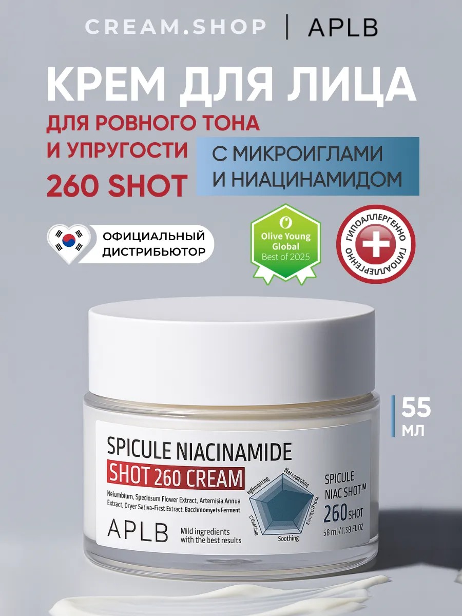 The Korean anti-aging facial cream with microneedles, APLB Spicule Niacinamide Shot 260 Cream, will become your indispensable skincare assistant.