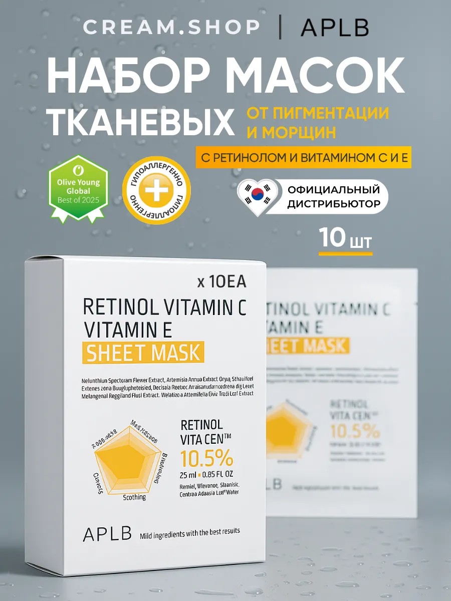 APLB Маски для лица тканевые с ретинолом и витамином С 10 шт