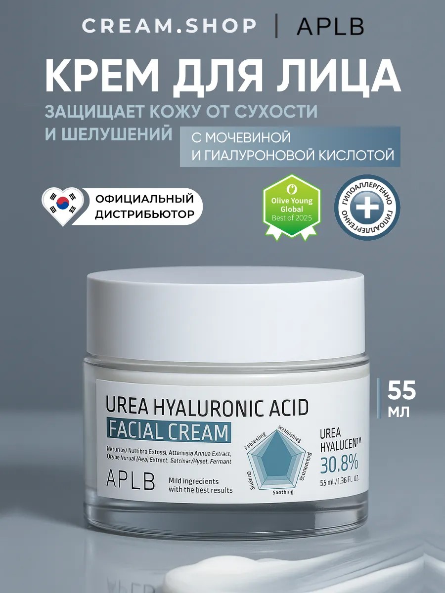 APLB Крем для лица с мочевиной увлажняющий гиалуроновый