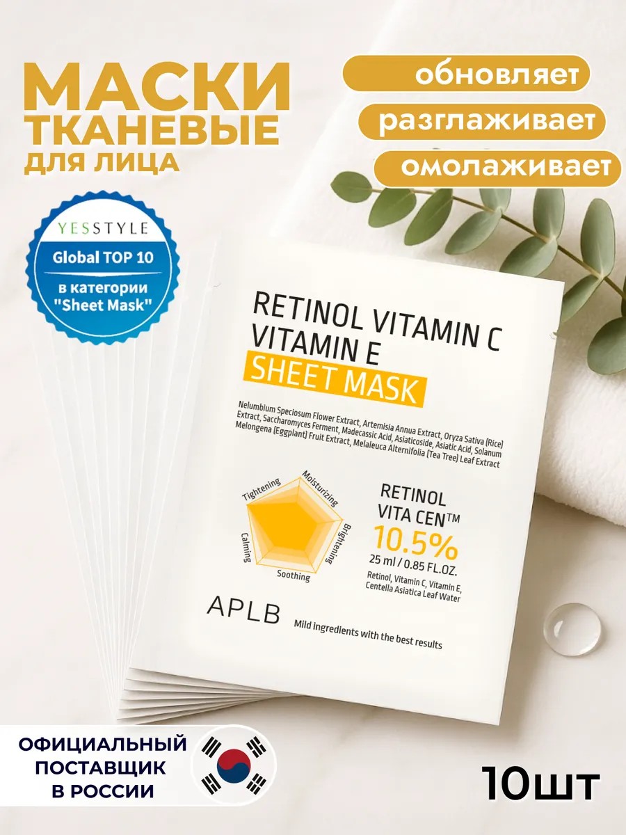 APLB Маска тканевая для лица с ретинолом набор 10штук