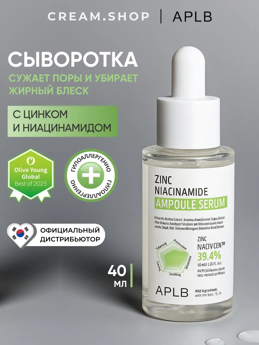 Сыворотка для лица Zinc Niacinamide Ampoule Serum от APLB - это идеальное решение для борьбы с несовершенствами проблемной кожи. Матирующая сыворотка для лица разработана для борьбы с жирным блеском, высыпаниями и прыщами, обеспечивая уход за комбинированной и жирной кожей. Увлажняющая сыворотка для лица разработана в Корее - стране инновационных эффективных формул. Продукт содержит ниацинамид и цинк - компоненты, которые уменьшают воспаления, сужают расширенные поры, осветляют черные точки и комедоны. Ниацинамид также выравнивает тон кожи, мягко осветляет пигментные пятна, делая их менее заметными. Средство также способствует осветлению кожи, помогая избавиться от постакне, уменьшает красноту и воспаления. Продукт изготовлен на основе центеллы, которая успокаивает кожу, снижает количество прыщей и высыпаний, разглаживает мелкие морщинки, повышает упругость кожи. Не упустите возможность подарить себе или своим близким качественную корейскую косметику. Такой подарок на день рождения точно порадует и женщину, и мужчину. Подходит для ухода за кожей подростков. Можно использовать в качестве базы под макияж.