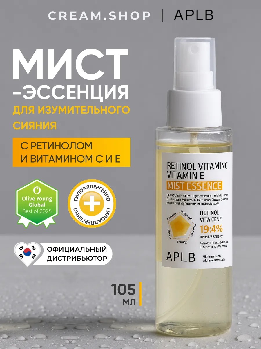 Откройте для себя секрет идеальной кожи с увлажняющим тонер мистом для лица Retinol Vitamin C Vitamin E Mist Essence от APLB - корейского бренда, который предлагает инновационный уход за вашей кожей! Спрей для лица и тела из Кореи содержит ретинол и витамин С которые способствуют осветлению кожи, сужению пор, а также борьбе с морщинами, воспалениями и постакне. Мист эссенция также содержит гидролат центеллы азиатской, который помогает от прыщей и высыпаний, интенсивно увлажняет и успокаивает кожу от покраснений. Продукт также содержит мочевину, которая предотвращает сухость и обезвоженность кожи, удерживает влагу в коже. Уникальное сочетание ингредиентов делает этот продукт идеальным для ухода за лицом взрослых женщин. Мист можно использовать как для лица, так и для тела. Средство APLB создан для тех, кто ценит высокое качество ухода за кожей. Он помогает достичь упругости, эластичности и ровного тона кожи, придавая ей здоровое сияние и молодой вид. Сделайте себе или вашей близкой женщине особенный подарок на день рождения или другой праздник. Позвольте ей насладиться корейскими стандартами ухода за кожей и почувствовать себя прекрасной и уверенной.
