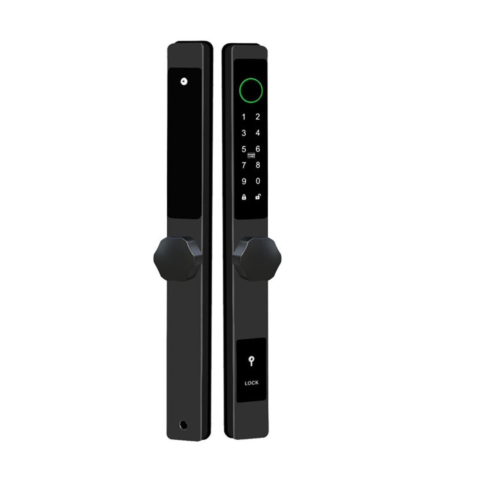 APP Waterproof Smart Fingerprint Password Lock Bridge-Cut Aluminum Alloy for Outdoor Push Pull Sliding Frame Glass Door (Color : Silver A 8535) (Black a 8535)