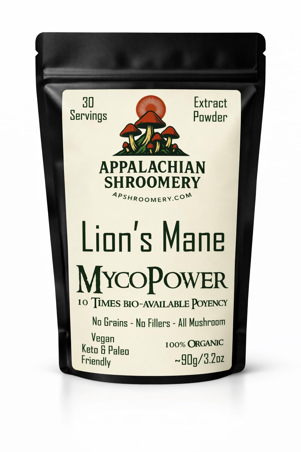 Appalachian Shroomery Lion's Mane Extract Powder is crafted from 100 real Lion's Mane fruiting bodies, never mycelium grown on grain. Using a traditional water extraction process, we carefully simmer and concentrate the mushrooms to preserve their natural beta-glucans and beneficial compounds, then dry and mill the extract into a fine, easy-to-mix powder. Lion's Mane has been traditionally used for overall wellness and vitality, making it a popular choice for those seeking a daily mushroom wellness routine. Our extract powder is vegan, gluten-free, and contains no grains, fillers, binders, or artificial ingredients — just pure mushroom goodness. Each batch is produced in small quantities by Appalachian Shroomery to ensure quality, freshness, and consistency. Add to coffee, tea, smoothies, or your favorite beverage for a simple daily wellness ritual. These statements have not been evaluated by the Food and Drug Administration. This product is not intended to diagnose, treat, cure, or prevent any disease. Each batch is produced in small quantities by Appalachian Shroomery to ensure quality, freshness, and consistency. Add to coffee, tea, smoothies, or your favorite beverage for a simple daily wellness ritual. These statements have not been evaluated by the Food and Drug Administration. This product is not intended to diagnose, treat, cure, or prevent any disease.Small-Batch Crafted in the USA – Produced in small batches by Appalachian Shroomery for quality, freshness, and consistency you can trust. No Grains, No Fillers, No Mycelium – Vegan, gluten-free, and free from additives, binders, and artificial ingredients. Just pure Lion's Mane extract powder. Traditionally Used for Daily Wellness – Lion's Mane has a long history of traditional use for overall wellness and vitality. Ideal for those seeking a natural mushroom superfood. . Water-Extracted for Potency – Carefully simmered and reduced using traditional water extraction to preserve natural beta-glucans and active compounds. No harsh solvents or chemicals. 100 Fruiting Body Lion's Mane Extract – Made only from real Lion's Mane mushrooms, not mycelium on grain. Water-extracted to concentrate beneficial compounds for a clean, potent powder.