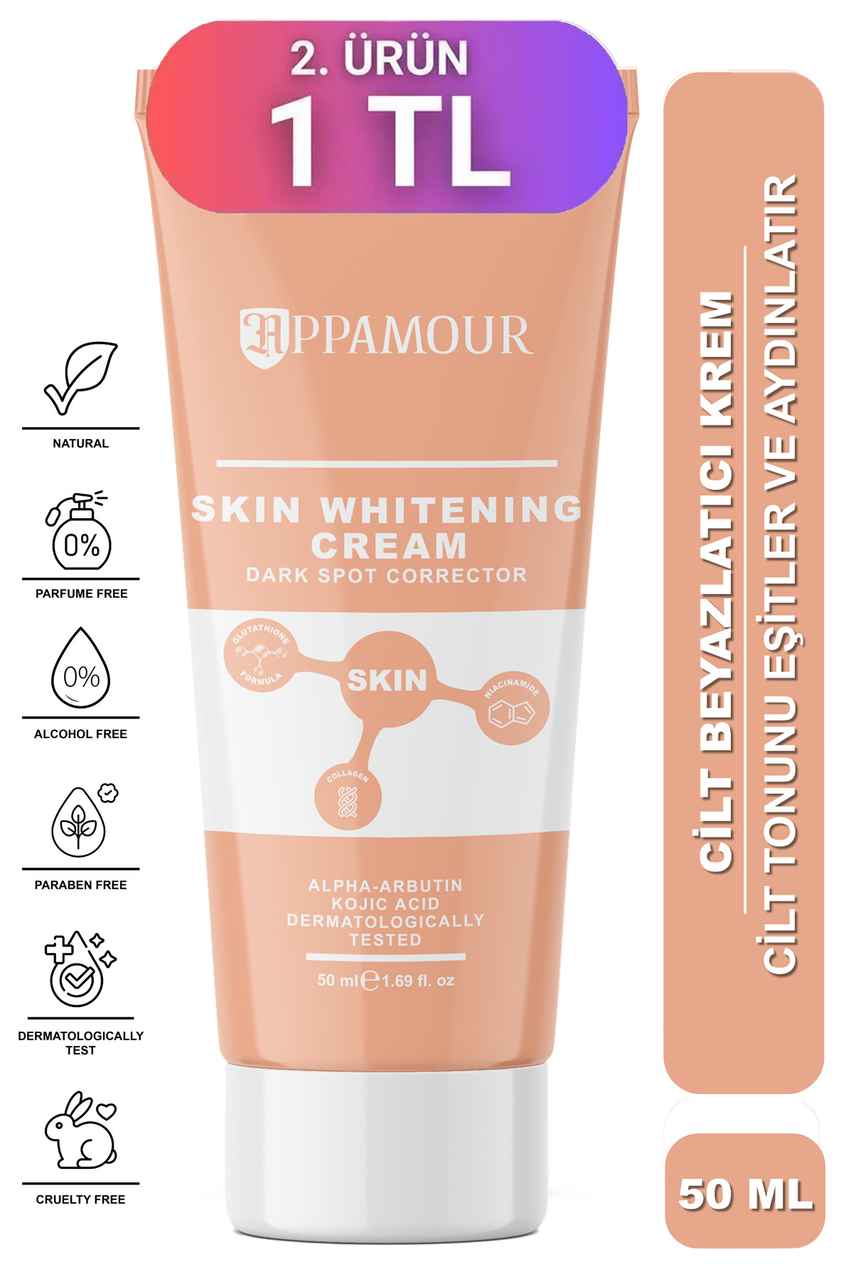 appamour Skin Whitening Brightening Anti-Spot Care Cream Glutathione Alpha Arbutin Kojic Acid 50ml