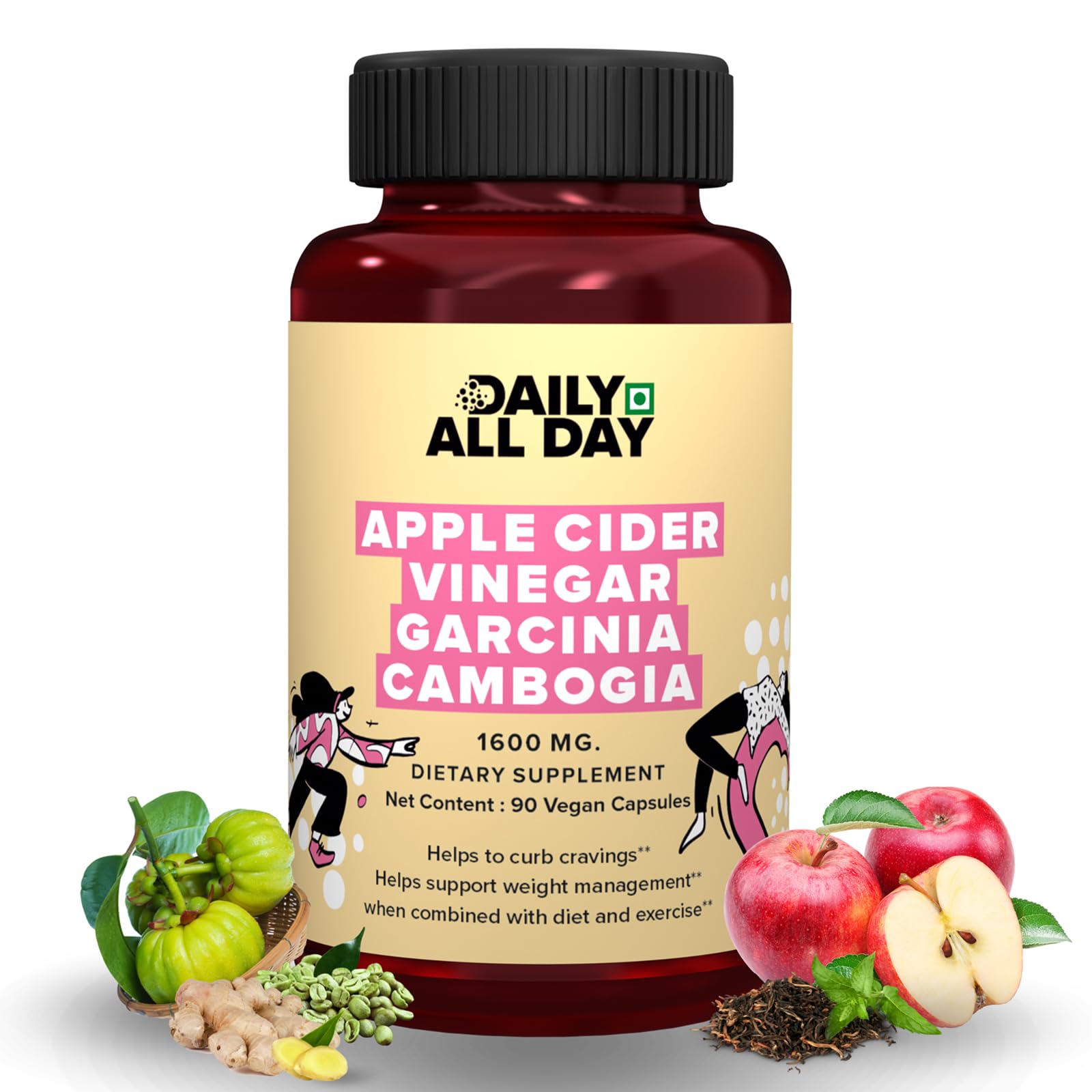 Free from artificial colours and fillers, and manufactured in a facility following good manufacturing practices (GMP) to support quality you can trust. Designed for adult men and women seeking a convenient once-daily capsule that complements an active lifestyle and routine. Green tea extract and ginger are added for their botanical advantages in supporting antioxidant activity and everyday wellness. Includes gymnema sylvestre, fenugreek and triphala to assist in maintaining normal blood sugar balance and digestive comfort. Daily All Day's formula features a blend of apple cider vinegar, Garcinia Cambogia and green coffee to support healthy metabolic function when taken with a balanced diet.