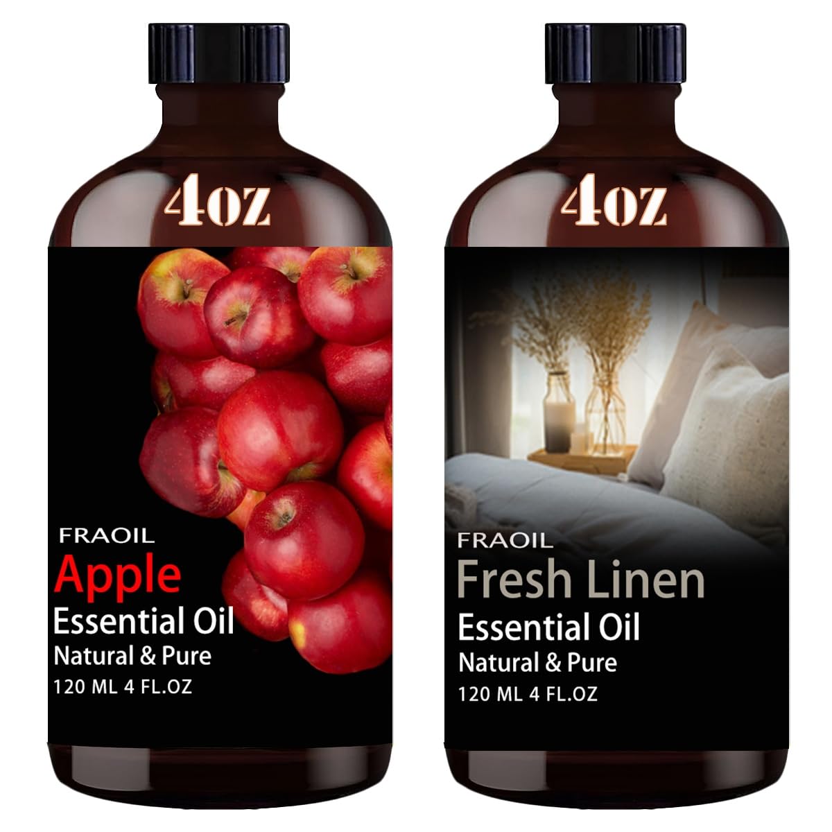 Apple Essential Oil and Fresh Linen Essential Oil 4 Fl Oz 120ML for Diffuser Humidifier Yoga Cleaning DIY Candle Soap Making Perfume Gift for Women Essential Oils