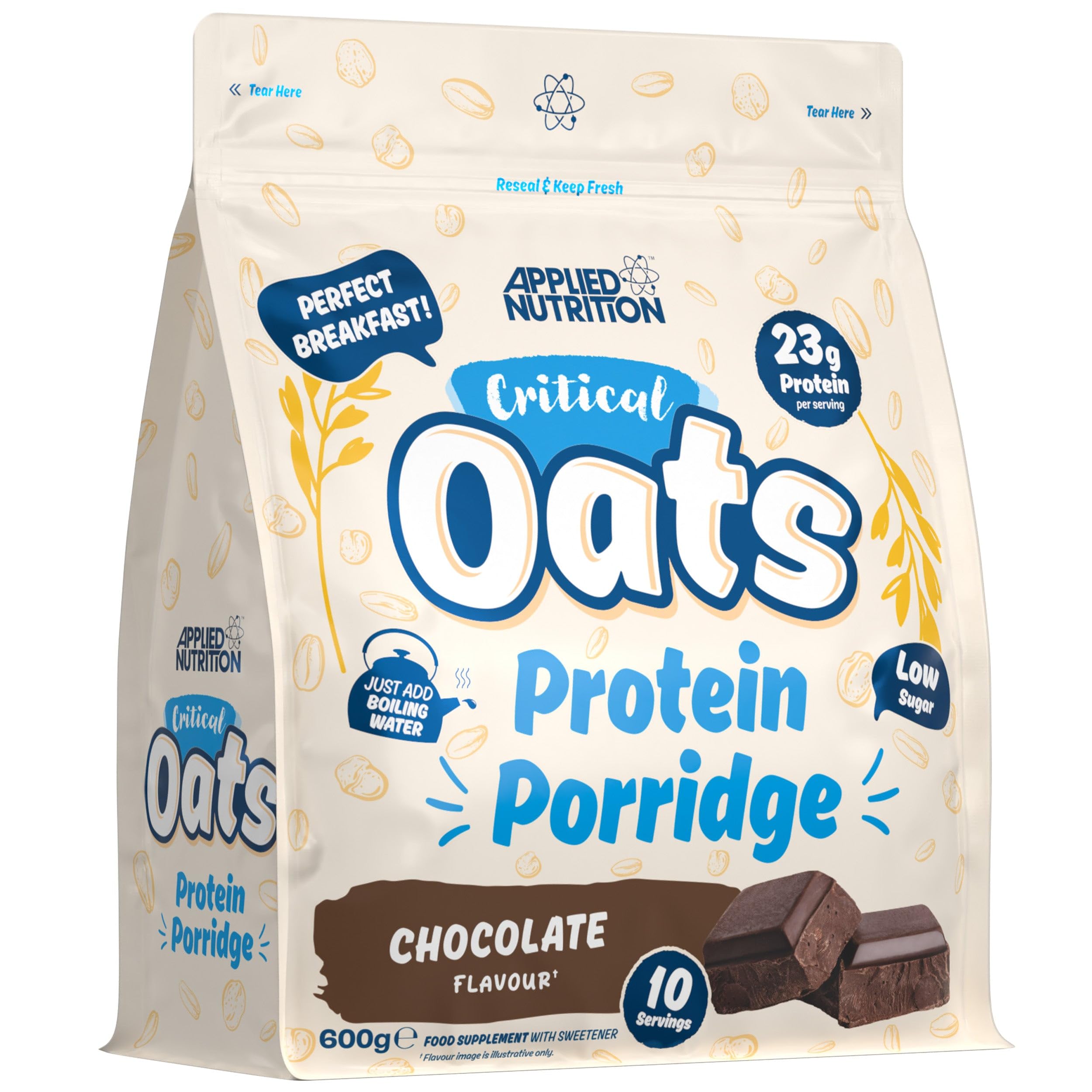 Start your day right with CRITICAL OATS PROTEIN PORRIDGE FROM APPLIED NUTRITION: a quick, protein-packed breakfast to help you take on the day! CRITICAL OATS PROTEIN PORRIDGE FEATURES: Critical Oats is more than just oats it's a convenient blend of organic whole grain oats and high-quality protein, perfect for busy lifestyles. With a quick 2-minute preparation time, it's ideal for anyone on the go who still wants to enjoy a protein-rich breakfast. Critical Oats Protein Porridge contains a whopping 23g of protein per serving and only 1.4g of sugars, making it an excellent choice for those who want to get the most out of their meal. Available in a variety of delicious flavors, including Banana, this oatmeal ensures you can enjoy a tasty breakfast every morning. The combination of organic whole grain oats and high-quality protein makes this porridge an ideal solution for athletes and active people. The easy-to-prepare formula makes it simple to take Critical Oats with you, so you can enjoy a nutritious breakfast or snack on the go. CRITICAL OATS PROTEIN PORRIDGE FEATURES: High in protein Quick to prepare Low in sugar Delicious flavors 10 servings HOW TO USE CRITICAL OATS PROTEIN PORRIDGE: Option 1: Mix 1 serving (approx. 60 g) with 150 ml boiling water. Stir well and let sit for 1-2 minutes. Enjoy your delicious porridge! Option 2: Mix 1 serving (approx. 60 g) with 100 ml cold water or milk and stir well. For a hot meal, microwave for 30 seconds. Stir again and enjoy! ORDER CRITICAL OATS PROTEIN PORRIDGE: Body Supplies offers a wide range of Proteins [ proteins ] from various brands. Order your Oats [ carbohydrates oatmeal-oats ] from Applied Nutrition [ brand applied-nutrition ] at Body Supplies and benefit from competitive prices and fast delivery. INGREDIENTS Per serving: 60 Whole grain oat flakes, whey protein concentrate (milk)(30 )(contains emulsifier: sunflower lecithin), iso-xp whey protein isolate, medium chain triglycerides, cocoa powder, flavouring, thickener (xanthan gum) and sweeteners (sucralose and stevia) DIRECTIONS FOR USE Option 1: mix 1 scoop (30 g) with 100-150 ml boiling water, then stir well and let stand for 1-2 minutes, then you can eat and enjoy! Option 2: Mix 1 scoop (30g) with 100-150ml of cold water or milk and stir well, then microwave for 30 seconds and mix well. SAFETY WARNING: A food supplement is not a substitute for a varied diet. This supplement is not suitable for persons under the age of 18. Do not exceed the recommended daily dose. Consult a doctor before using this product if you have a medical condition, are pregnant, breastfeeding, have an expectant medical condition, or are taking medication. LEGAL DISCLAIMER: Food supplements are not a substitute for a balanced and varied diet. View moreCritical Oats Protein Porridge 600gr Chocolate Chocolade 600g Start je dag goed met de CRITICAL OATS PROTEIN PORRIDGE VAN APPLIED NUTRITION: een snel, eiwitrijk ontbijt om de dag aan te kunnen! CRITICAL OATS PROTEIN PORRIDGE EIGENSCHAPPEN: Critical Oats is meer dan alleen havermout het is een handige mix van biologische volkoren havermout en hoogwaardige eiwitten, perfect voor een drukke levensstijl. Met zijn snelle bereidingstijd van slechts 2 minuten, is dit product ideaal voor iedereen die onderweg is, maar toch wil genieten van een eiwitrijk ontbijt. De Critical Oats Protein Porridge bevat maar liefst 23 g eiwit per portie en slechts 1,4 g suikers, waardoor het een uitstekende keuze is voor wie zo veel mogelijk uit zijn maaltijd wil halen. Verkrijgbaar in verschillende heerlijke smaken zoals Banana, zorgt deze havermout ervoor dat je iedere ochtend kunt genieten van een smakelijk ontbijt. De combinatie van biologische volkoren havermout en hoogwaardige eiwitten maakt deze porridge een ideale oplossing voor sporters en actieve mensen. De eenvoudig te bereiden formule maakt het makkelijk om Critical Oats mee te nemen, zodat je ook onderweg kunt genieten van een voedzaam ontbijt of tussendoortje. CRITICAL OATS PROTEIN PORRIDGE KENMERKEN: Hoog in eiwitten Snelle bereiding Laag in suiker Heerlijke smaken 10 servings CRITICAL OATS PROTEIN PORRIDGE GEBRUIKEN: Optie 1: Meng 1 portie (ca. 60 g) met 150 ml kokend water. Roer goed door en laat 1-2 minuten staan. Geniet van je heerlijke porridge! Optie 2: Meng 1 portie (ca. 60 g) met 100 ml koud water of melk en roer goed door. Voor een warme maaltijd kun je het in de magnetron plaatsen gedurende 30 seconden. Roer nog een keer en geniet! CRITICAL OATS PROTEIN PORRIDGE BESTELLEN: Body Supplies biedt een breed assortiment Eiwitten [ eiwitten ] van verschillende merken aan. Bestel je Oats [ koolhydraten havermout-oats ] van o.a. Applied Nutrition [ merk applied-nutrition ] bij Body Supplies en profiteer van scherpe prijzen en snelle levering. INGREDIËNTEN Per serving: 60 Volkoren havervlokken, weiproteineconcentraat (melk)(30 )(bevat emulgator: zonnebloemlecithine), iso-xp weiproteineisolaat, middellangeketen-triglyceriden, cacaopoeder, aroma, verdikkingsmiddel (xanthaangom) en zoetstoffen (sucralose en stevia) GEBRUIKSAANWIJZING Optie 1: meng 1 maatschep (30 g) met 100-150 ml kokend water, roer vervolgens goed en laat staan voor 1-2 minuten, dan kunt u eten en genieten! Optie 2: meng 1 maatschep (30 g) met 100-150 ml koud water of melk en roer goed, plaats het vervolgens in de magnetron voor 30 seconden en meng vervolgens goed. VEILIGHEIDSWAARSCHUWING Een voedingssupplement is geen vervanging voor een gevarieerde voeding. Dit supplement is niet geschikt voor personen beneden de 18 jaar. Aanbevolen dagdosering niet overschrijden. Raadpleeg een arts voor gebruik van dit product bij een medische aandoening, als u zwanger bent, borstvoedig geeft, een medische aandoening verwacht of medicatie gebruikt. WETTELIJKE DISCLAIMER Voedingssupplementen zijn geen vervanging voor een evenwichtige en gevarieerde voeding. Meer bekijken
