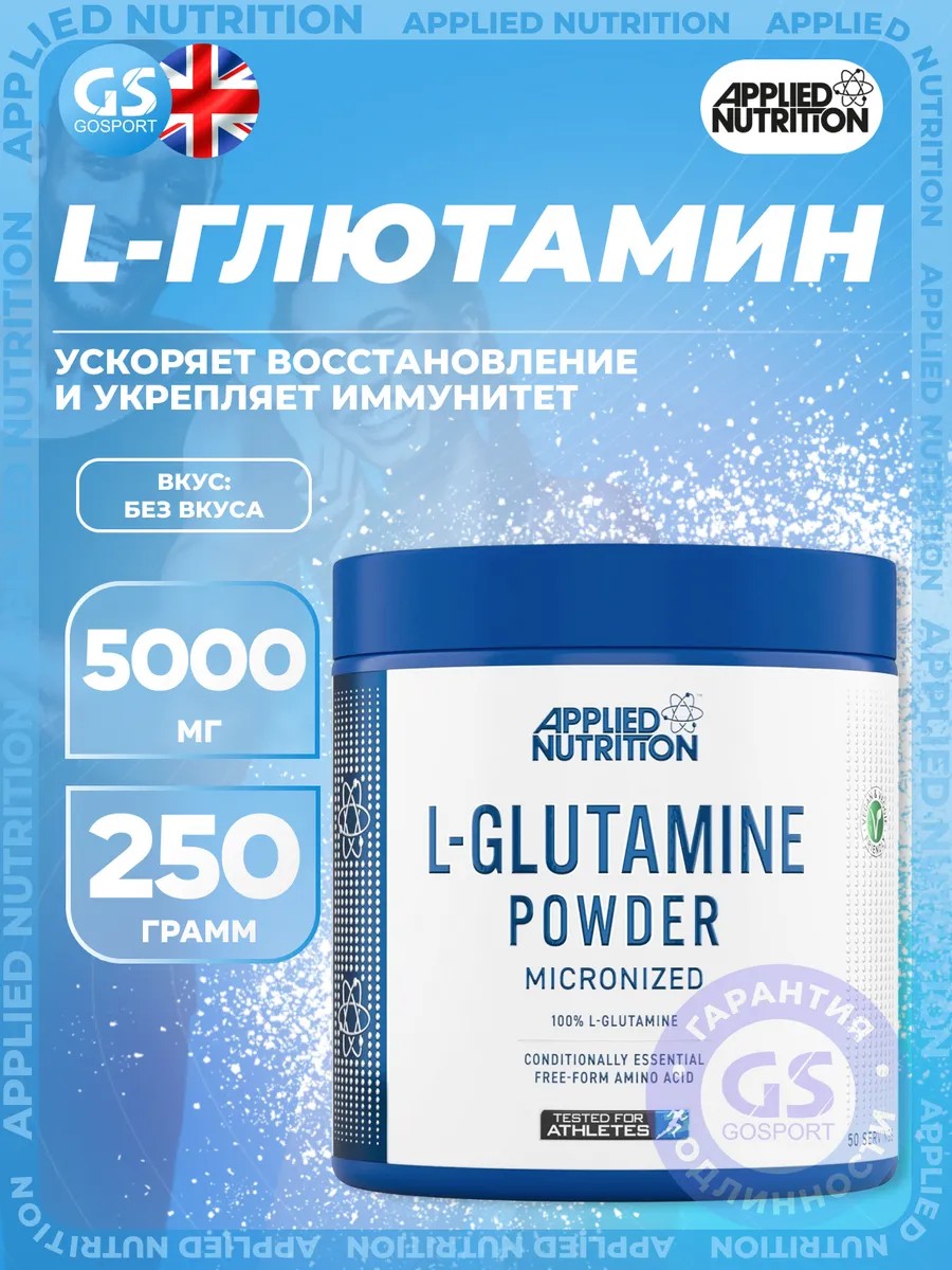L-Глютамин L-Glutamine Powder 250 г, Без вкуса. Глютамин является наиболее распространенной аминокислотой в мышечной ткани, однако, когда вы тренируетесь, уровень глютамина может значительно снизиться по мере разрушения мышечной ткани, особенно при бодибилдинговом стиле тренировок. Прием глютамина (особенно после тренировки) может позволить вам восстановить истощенный уровень глютамина. Если вы хотите наращивать и восстанавливать новые мышцы безопасным и здоровым способом, не ищите ничего, кроме L-Glutamine от Applied Nutrition. Каждый раз, когда вы тренируетесь, уровень глютамина естественным образом снижается. Когда вы принимаете глютамин непосредственно после тренировки, вы можете восстановить уровень глютамина и достичь своих целей в спорте или фитнесе быстрее и эффективнее. Независимо от того, любите ли вы поднимать тяжести или предпочитаете выполнять упражнения с помощью кардио, глютамин полезен для всех при достижении своих целей в фитнесе и спорте. Глютамин в человеческом организме играет ключевую роль в процессах восстановления и роста мышечной ткани, поддержания здоровья иммунной и пищеварительной системы. Глютамин ускоряет процесс регенерации мышечной ткани после физических нагрузок, что обеспечивает быстрое восстановление. Именно поэтому добавка является неотъемлемым компонентом спортивного питания для профессиональных спортсменов и людей, занимающихся спортом. Являясь ключевым компонентом для иммунных клеток, глютамин помогает укрепить ваше сопротивление вредным воздействиям и инфекциям. Глютамин способствует восстановлению и поддержанию здоровья слизистой кишечника, улучшая пищеварение и всасывание питательных веществ. Профессиональное спортивное питание L-глютамин от Applied Nutrition проходит испытания в лаборатории, аккредитованной по стандарту ISO 17025, поэтому спортсмены могут быть уверены, зная, что полученный ими порошок L-глютамина безопасен в использовании. Продукт подходит как мужчинам, так и женщинам, которые занимаются спортом и стремятся к достижению результатов. Рекомендации к применению пищевой добавки: принимайте по 1 порции (5 г) 1–3 раза в день во время еды. Для достижения оптимальных результатов принимайте 1 порцию после тренировки, запивая водой или соком.