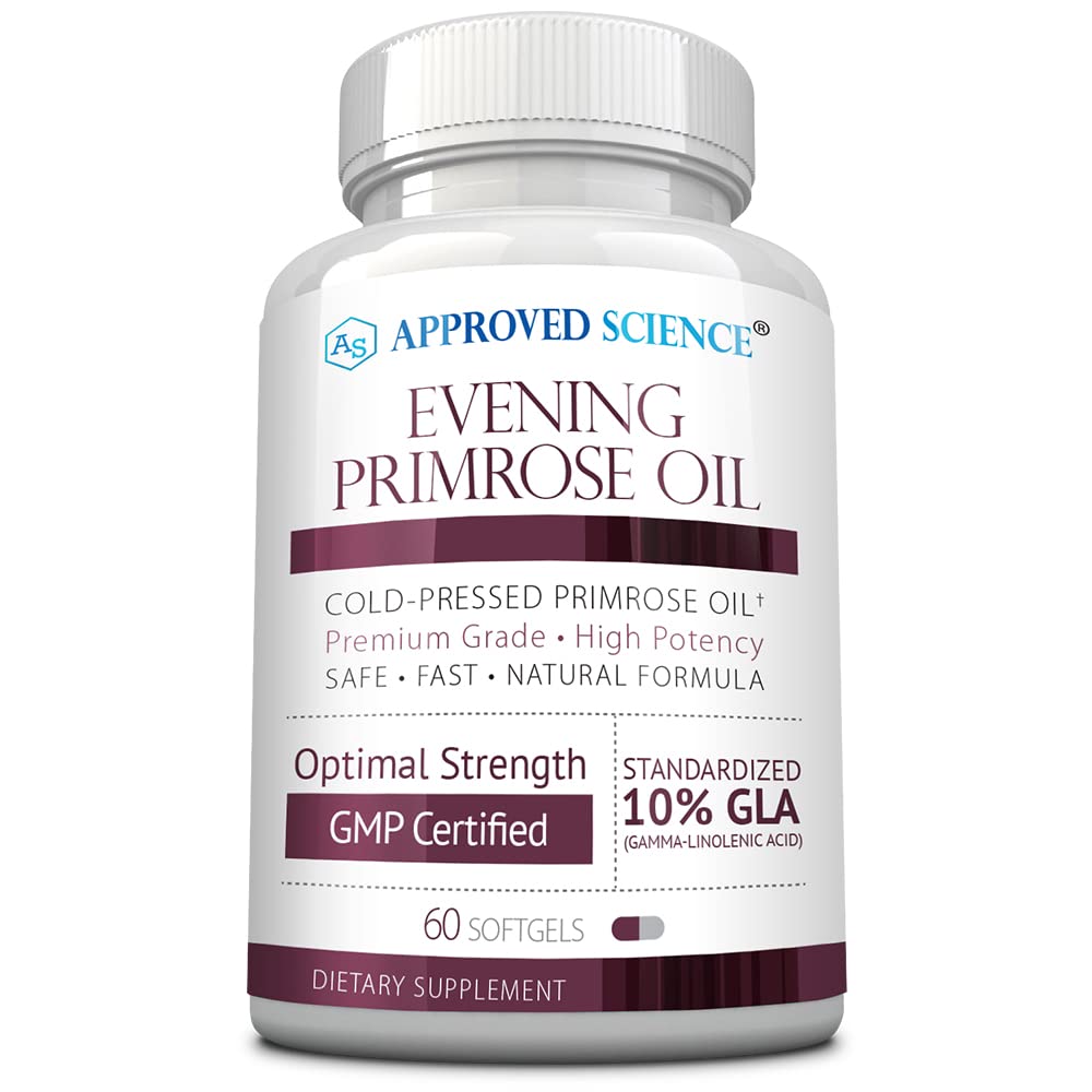 Approved Science Evening Primrose Oil - Maximum Strength - Cold Pressed - 10% GLA - Hormonal Balance, Skin and Heart Health - 60 Softgels - All Natural
