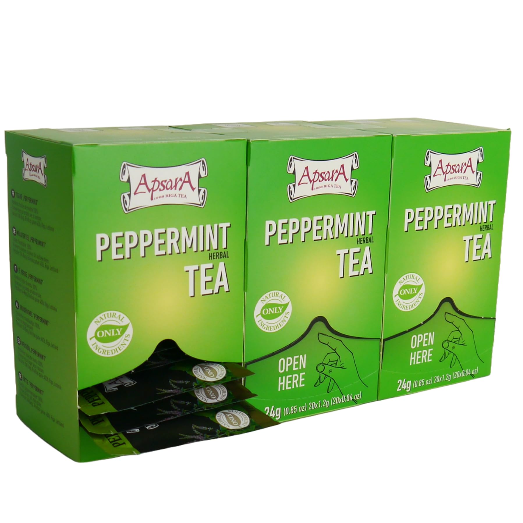 Apsara Apsara Peppermint Herbal Tea - 100% Natural - 60 Sachets (Pack of 3) - Refreshing and Aromatic Infusion
