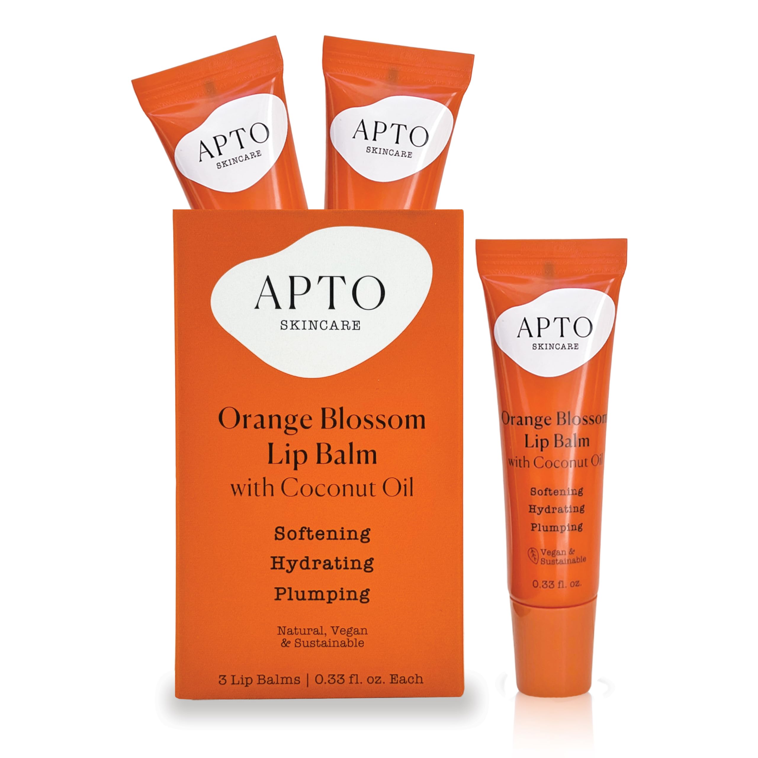 APTO 3-Pack of Orange Blossom Lip Balm w/Coconut Oil Trio: Pocket Lip Moisturizer for Dry Chapped Lips 0.33 fl. oz. Each