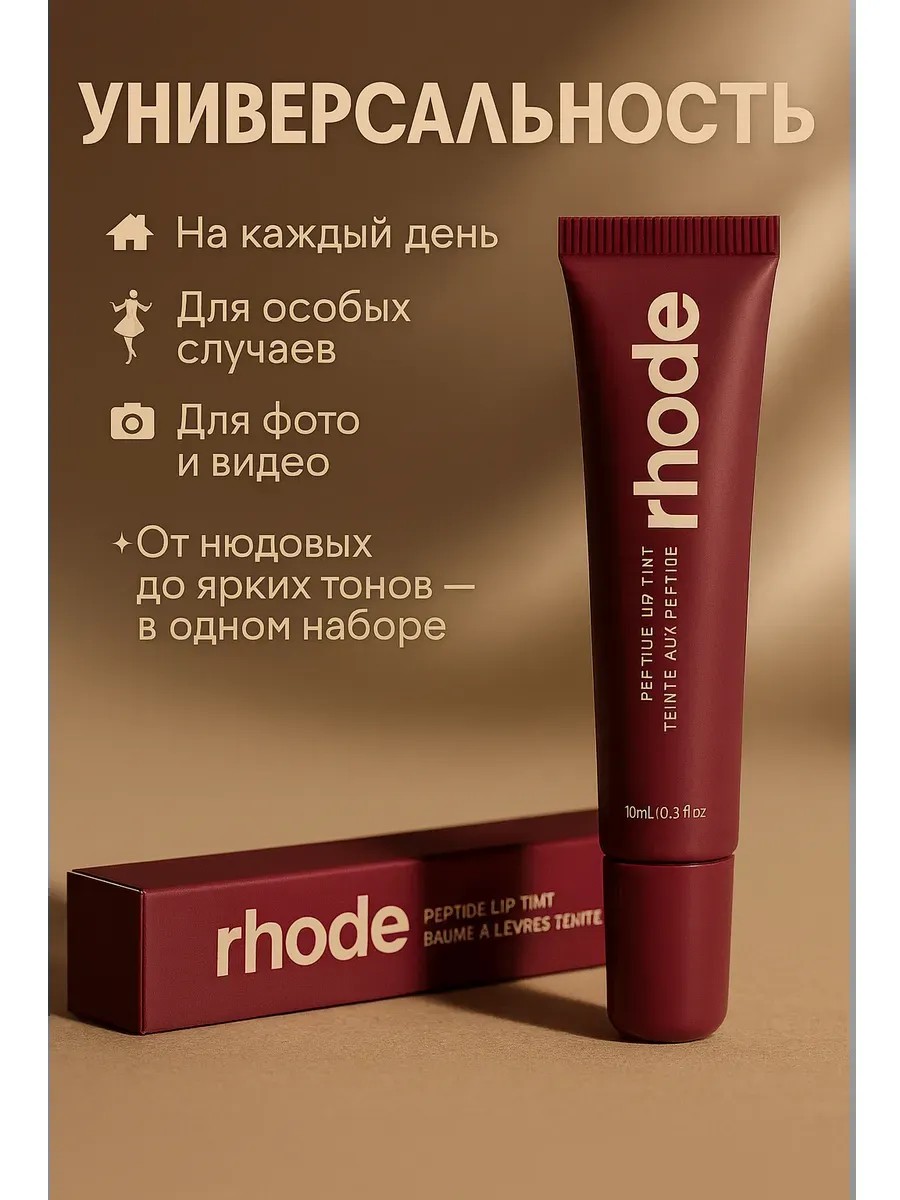 Peptide Lip Tint — это увлажняющий блеск-бальзам для губ с пептидами и маслом ши, который придаёт губам насыщенный бордовый/сливовый оттенок и элегантное сияние. Лёгкая текстура без липкости делает его идеальным для повседневного макияжа и вечернего образа.