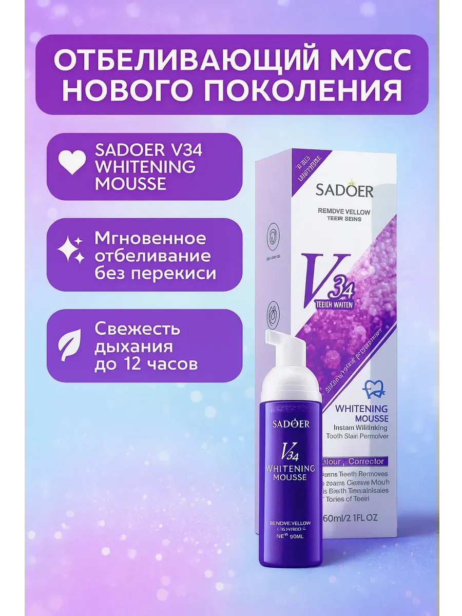 Whitening without peroxide—V34 mousse gently removes yellowness without damaging enamel.