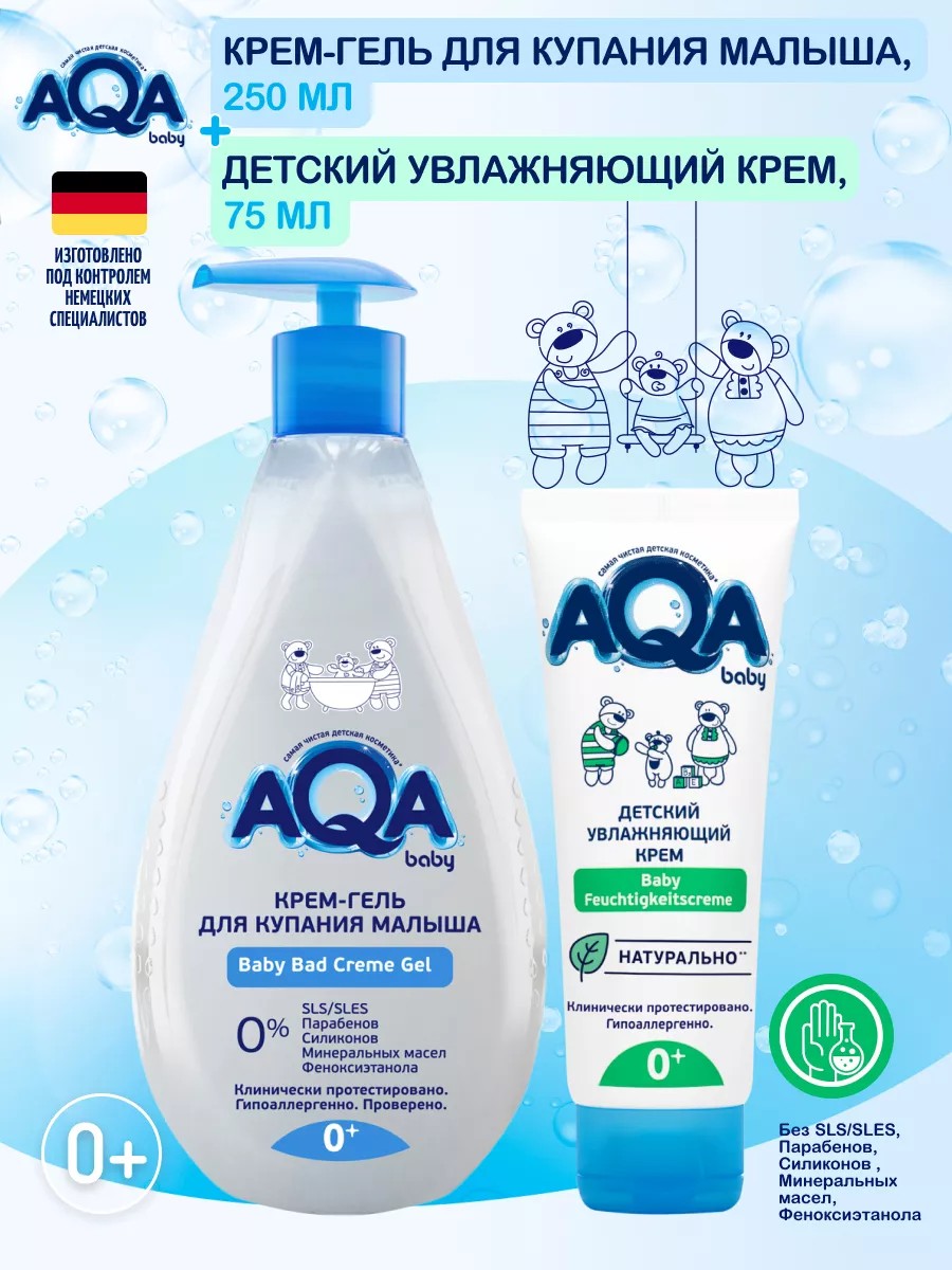 Aqa baby Крем-гель для купания и Увлажняющий крем, 250+75 мл