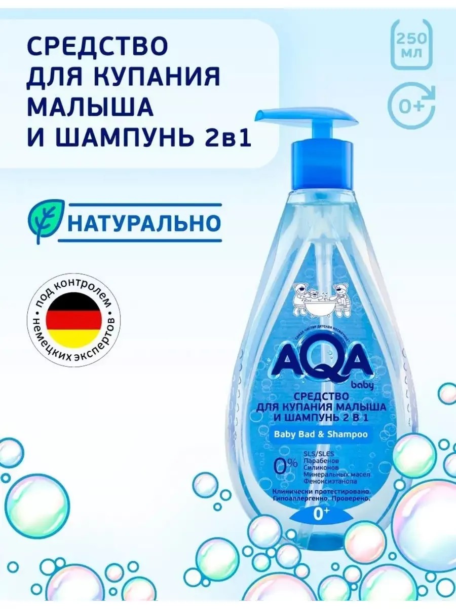 AQA Средство гель для купания малыша и детский шампунь для волос