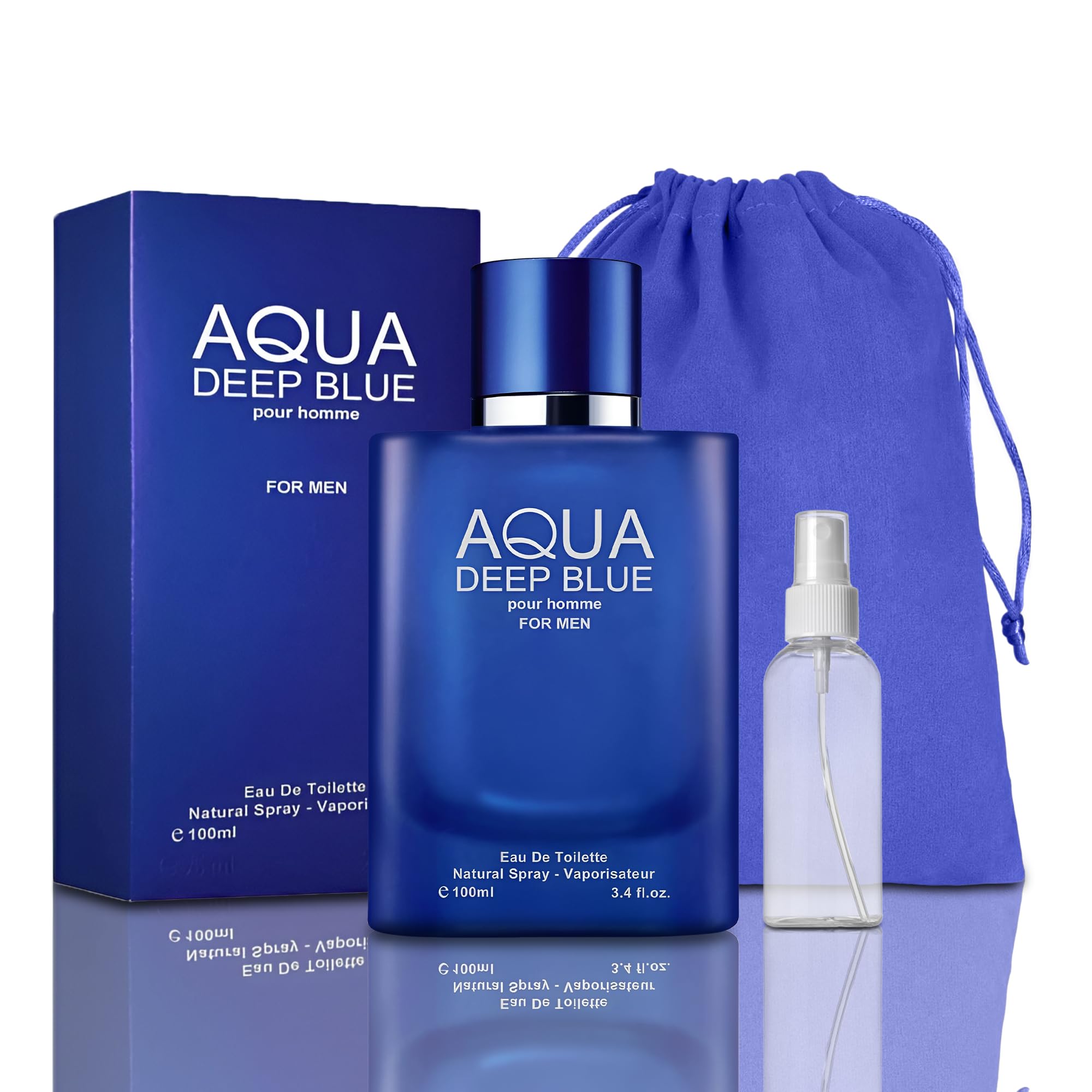 Aqua Deep Blue Men's Perfume - Fresh and Sophisticated Fragrance 100ml Cologne for Men with Travel Bag and Spray Bottle Daily Used Eau de Toilette Aqua Deep Blue 3.4 Fl Oz (Pack of 2)