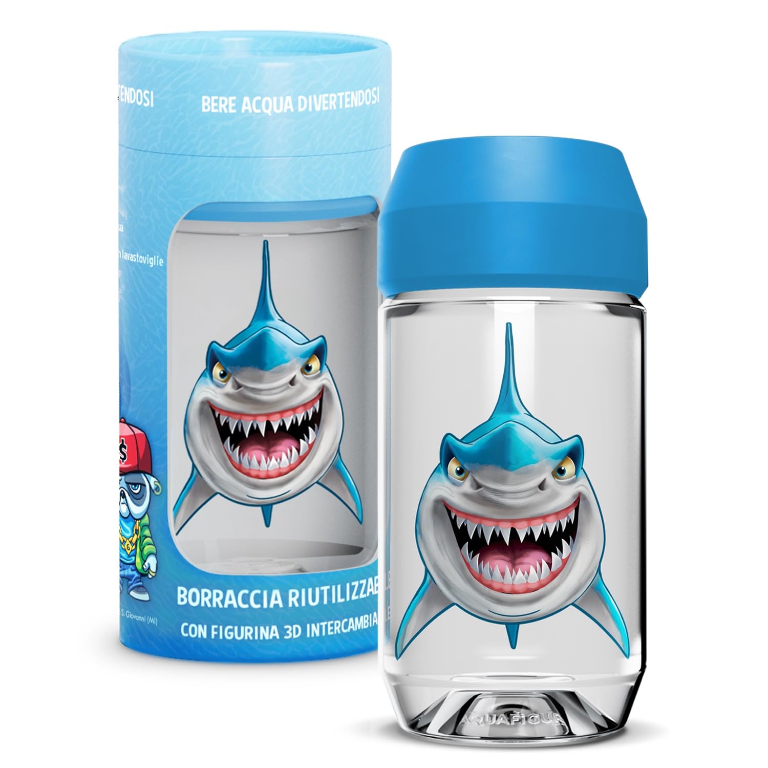 The Aquafigure reusable water bottle is the perfect choice for those who want to have fun drinking water. This bottle includes an interchangeable and collectible 3D figure: fun dinosaurs, unicorns, sharks, and more – choose the design you like. Made from BPA-free Tritan™, this bottle is certified for use with water and is fully reusable. Aquafigure offers a sustainable alternative to disposable bottles. Both the bottle and the 3D figure are dishwasher-safe for quick and hygienic cleaning. Available in 330 ml, it's suitable for all needs: school, outings, travel, or outdoor activities. Thanks to its robust and attractive design, Aquafigure is not just a container for liquids, but a personal and collectible item. Each version is designed to be a unique gift, ideal for children. The Aquafigure water bottle is not a toy. INGREDIENTS TritanThemed and collectible editions – Available with themed 3D figures: dinosaurs, unicorns, sharks, fairies, and street cred. Ideal gift for children and birthday parties. Capacity and portability – Available in a 330ml size (ideal for school, outings, and sports), with a compact and lightweight design. Easy to clean – Both the bottle and the 3D figure are dishwasher safe for quick and hygienic cleaning. Safe and durable materials – Made from BPA-free Tritan, the bottle is reusable and built to last. Customizable and fun design – Each Aquafigure bottle includes an interchangeable 3D figure, so you can change the look in seconds and have fun drinking water.Aquafigure, Gourde réutilisable, sans BPA, bouteille et figurine 3D, lavable au lave-vaisselle, personnalisable avec figurines 3D thématiques (Emoji, Dinosaures et autres) – Capacité 330 ml – CouleurDESCRIPTION DU PRODUIT DESCRIPTION DU PRODUIT La gourde réutilisable Aquafigure est le choix parfait pour ceux qui veulent boire de l'eau tout en s'amusant. Cette gourde comprend une figurine 3D interchangeable et à collectionner : dinosaures amusants, licornes, requins, et bien plus encore - choisissez le motif que vous aimez. Fabriquée en Tritan (TM) sans BPA, cette gourde est certifiée pour une utilisation avec de l'eau et entièrement réutilisable, Aquafigure offre une alternative durable aux bouteilles jetables. La bouteille et la figurine 3D passent au lave-vaisselle pour un nettoyage rapide et hygiénique. Disponible en 330 ml, s'adapte à tous les besoins : utilisation scolaire, excursions, voyages ou activités en plein air. Grâce à son design robuste et attrayant, Aquafigure n'est pas seulement un récipient à liquides, mais un objet personnel et à collectionner. Chaque version est conçue pour être un cadeau original, idéal pour les enfants. La gourde Aquafigure n'est pas un jouet. INGRÉDIENTS TritanÉditions thématiques et à collectionner - Disponible avec figurines 3D à thème : dinosaures, licornes, requins, fées et street cred. Cadeau idéal pour les enfants et les fêtes d'anniversaire. Capacité et portabilité – Disponible en format 330 ml (idéal pour l'école, les excursions, le sport), avec un design compact et léger. Facile à nettoyer - Gourde et figurine 3D lavables au lave-vaisselle pour un nettoyage rapide et hygiénique. Matériaux sûrs et durables - Gourde en Tritan sans BPA, réutilisable et conçue pour durer. Design personnalisable et amusant - Chaque gourde Aquafigure comprend une figurine 3D interchangeable, pour changer le look en quelques secondes et boire de l'eau tout en s'amusant.