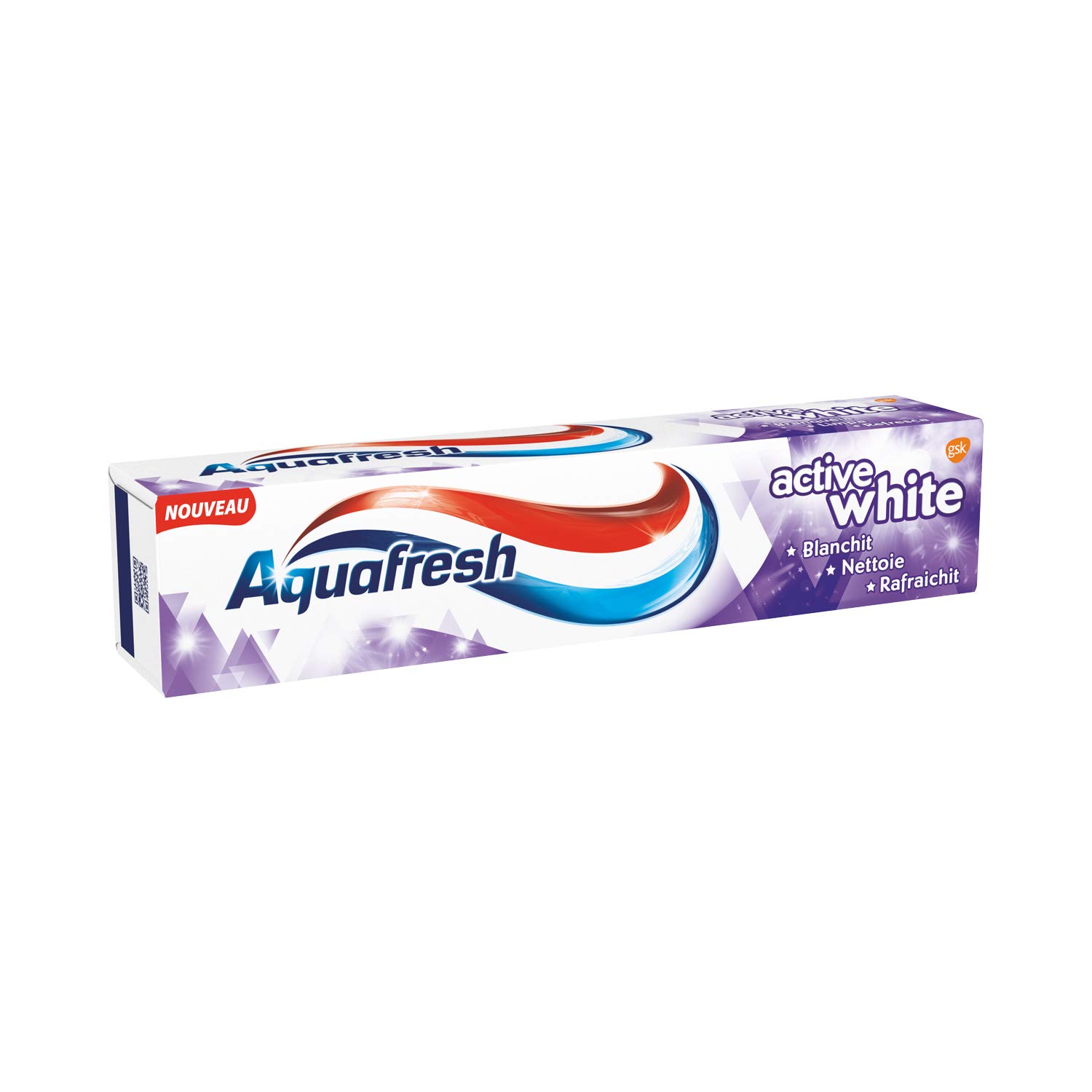 DIRECTIONS FOR USE Apply a small amount of toothpaste to a damp toothbrush, brush your teeth in a circular motion for two minutes, then spit out and rinse your mouth. SAFETY WARNING Brushing twice a day is recommended for optimal effectiveness. Do not swallow toothpaste.Brushing teeth twice a day is recommended for optimal effectiveness. Do not swallow toothpaste. Product containing fluoride provides fresh breath for an immediate feeling of cleanliness and freshness. Formulated with whitening agents to remove stains and restore the natural whiteness of teeth. Micro-cleaning action provides teeth with cleanliness and shine. Active White 3-in-1 protection toothpaste for healthy gums, strengthened teeth and fresh breath. This item is no longer on sale! MODE D'EMPLOI Appliquez une noisette de dentifrice sur une brosse à dents humide, brossez vos dents en effectuant des mouvements circulaires pendant deux minutes, puis recrachez et rincez votre bouche. AVERTISSEMENT DE SÛRETÉ Brossage des dents recommandé deux fois par jour pour une efficacité optimale, Ne pas avaler le dentifriceBrossage des dents recommandé deux fois par jour pour une efficacité optimale, Ne pas avaler le dentifrice. Produit contenant du fluor procurant une haleine fraîche pour une sensation de propreté et de fraîcheur immédiate. Formulé avec des agents blanchissants pour une élimination des tâches et une restauration de la blancheur naturelle des dents, Action micro-nettoyante apportant aux dents propreté et brillance. Dentifrice Active White protection 3 en 1 pour des gencives saines, des dents fortifiées et une haleine fraîche. Cet article n est plus en solde !.