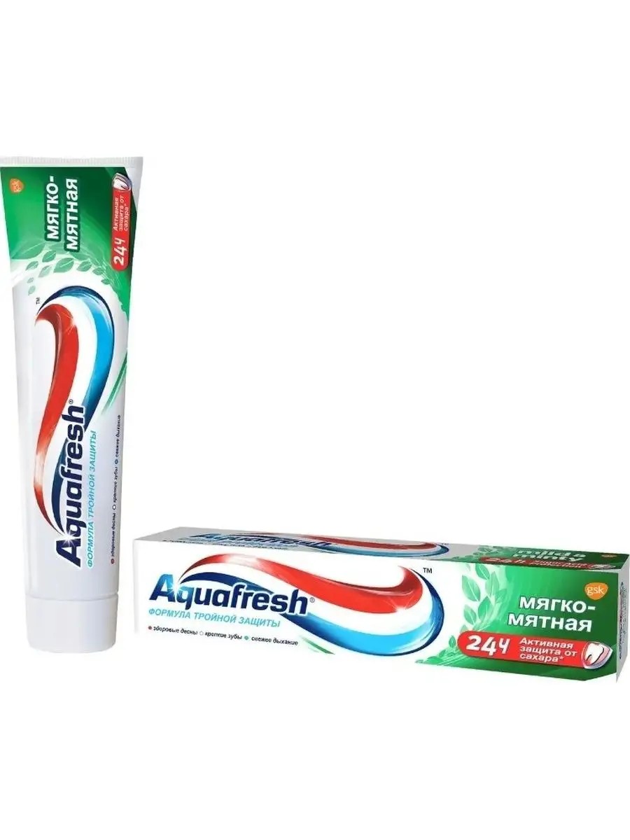 BD Shop предлагает - Ежедневный уход за полостью рта важен для здоровья ваших зубов и десен. Зубные пасты и щетки Aquafresh помогут вам позаботиться об очищении ваших зубов и свежести дыхания каждый день! Зубная паста Aquafresh Тройная защита Мягко-мятная обеспечивает тройную защиту полости рта для поддержания здоровья зубов и десен, а также свежего дыхания. Фтор в составе зубной пасты помогает укреплять эмаль зубов и защищать ваши зубы от кариеса. Зубная паста Aquafresh также обладает мягким мятным вкусом и подходит для ежедневного использования. Используйте зубную пасту Aquafresh Тройная защита Мягко-мятная в комплекте с подходящей вам зубной щеткой Aquafresh для комплексного ухода за полостью рта.