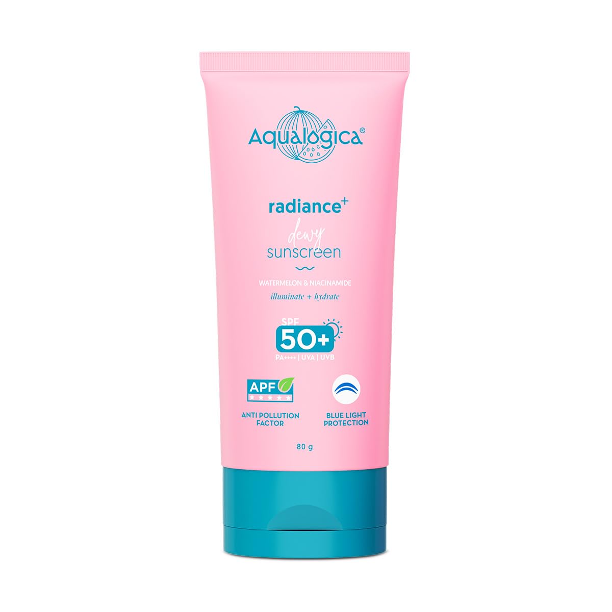 Aqualogica Radiance+ Dewy Face Sunscreen with SPF 50+ & PA+++ | Broad Spectrum Protection & No White Cast | Helps Give Healthy Skin with Watermelon & Niacinamide | 2.82 Oz/80g