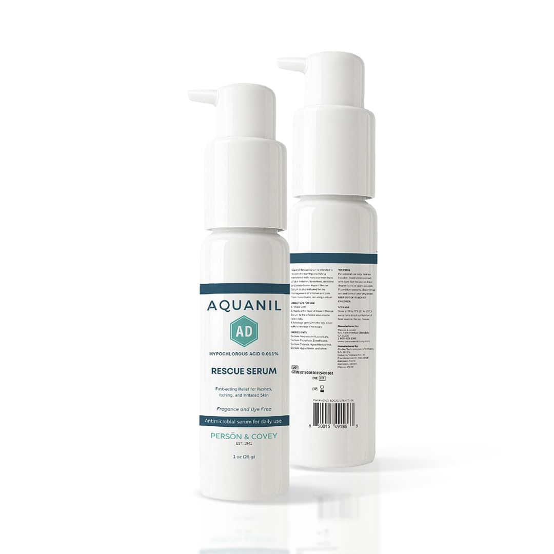 Aquanil AD Rescue Serum Hypochlorous Acid 0.011% for Itch & Rash Relief Soothing Serum for Irritated Skin Fragrance & Dye Free Sensitive Skin Safe Lightweight & Fast Absorbing 1 oz