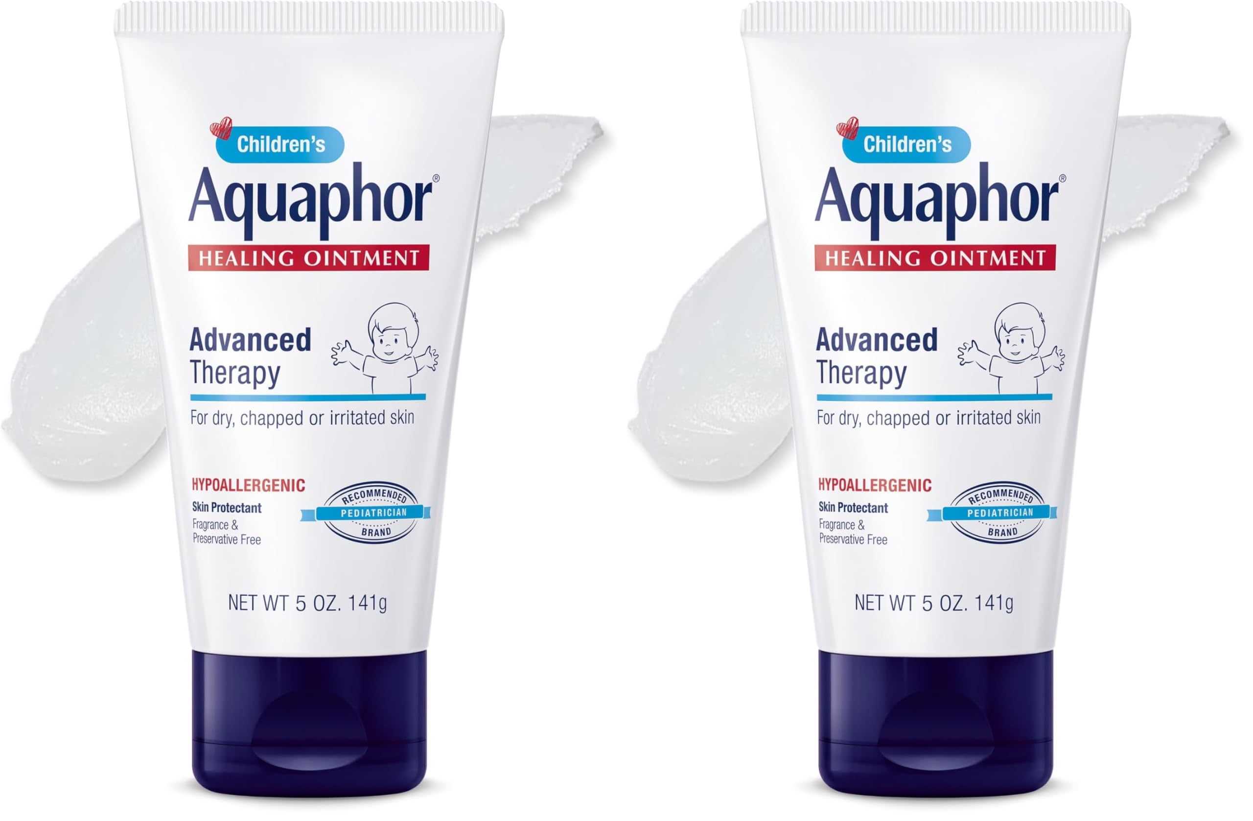 Aquaphor Children's Healing Ointment is one essential solution for kids' many skincare needs. This multipurpose ointment can be used to protect the skin to help heal minor cuts and scrapes and to soothe dry, chapped, irritated skin. Aquaphor Children's Healing Ointment can also help prevent chafing and helps protect skin from the drying effects of wind and cold weather. This skin protectant formula is also a moisturizing lip ointment for soothing relief to chapped lips. Uniquely formulated with 41 Petrolatum (skin protectant), this skin healing ointment works by creating a protective barrier on the skin that allows for the flow of oxygen and excess fluid to create an ideal healing environment. Aquaphor Children's Healing Ointment is hypoallergenic and free of fragrances and parabens. It's clinically proven and gentle on sensitive skin. An ideal size for the whole family, this wound healing ointment makes a great addition to your first aid supplies and skin care products to restore smooth, healthy skin so you can get on with your day comfortably. Aquaphor is a pediatrician recommended brand, and the 1 dermatologist recommended brand for dry, cracked skin.