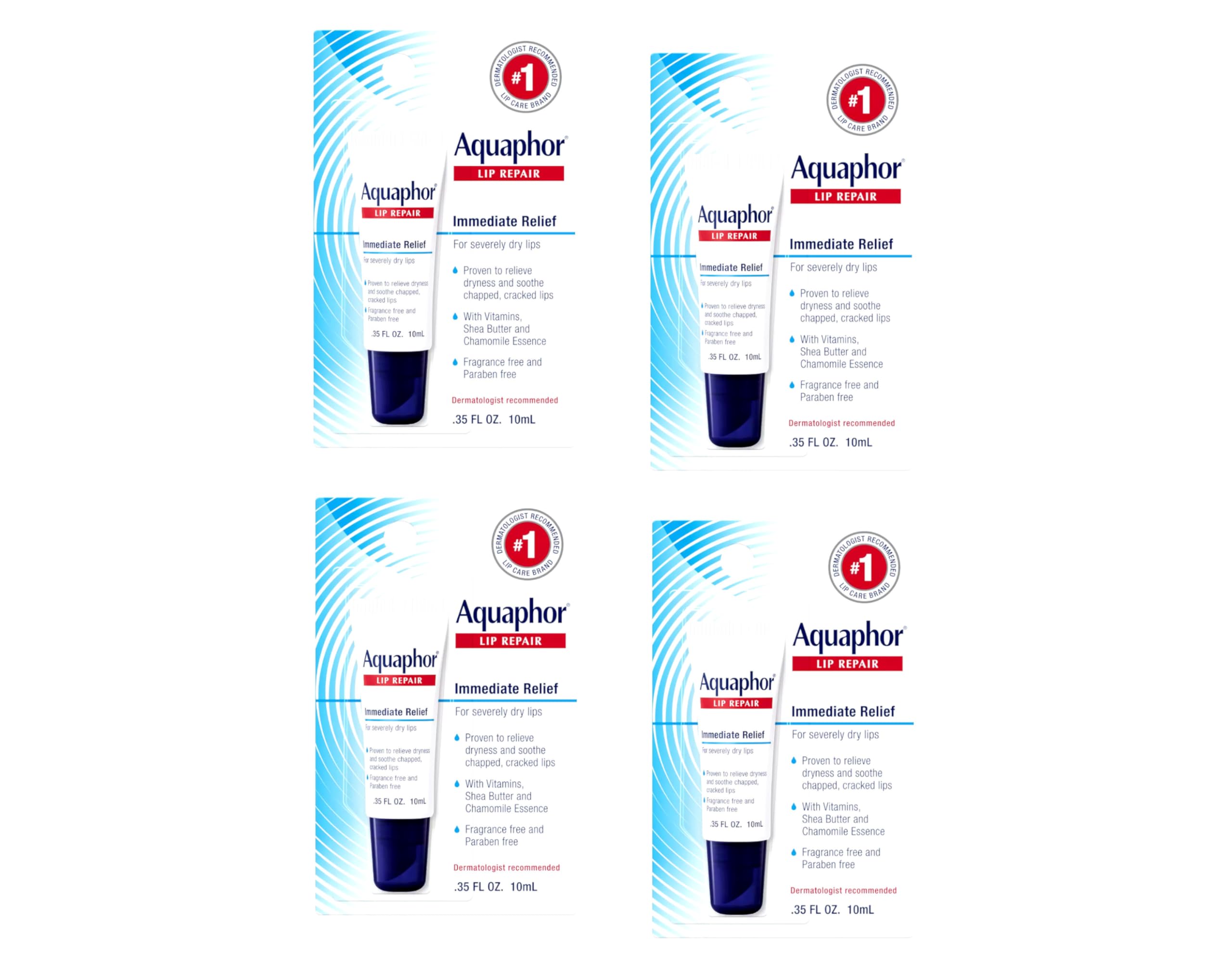 Aquaphor Lip Repair Ointment - Long-lasting Moisture to Soothe Dry Chapped Lips - .35 fl. oz Tube 4 Pack