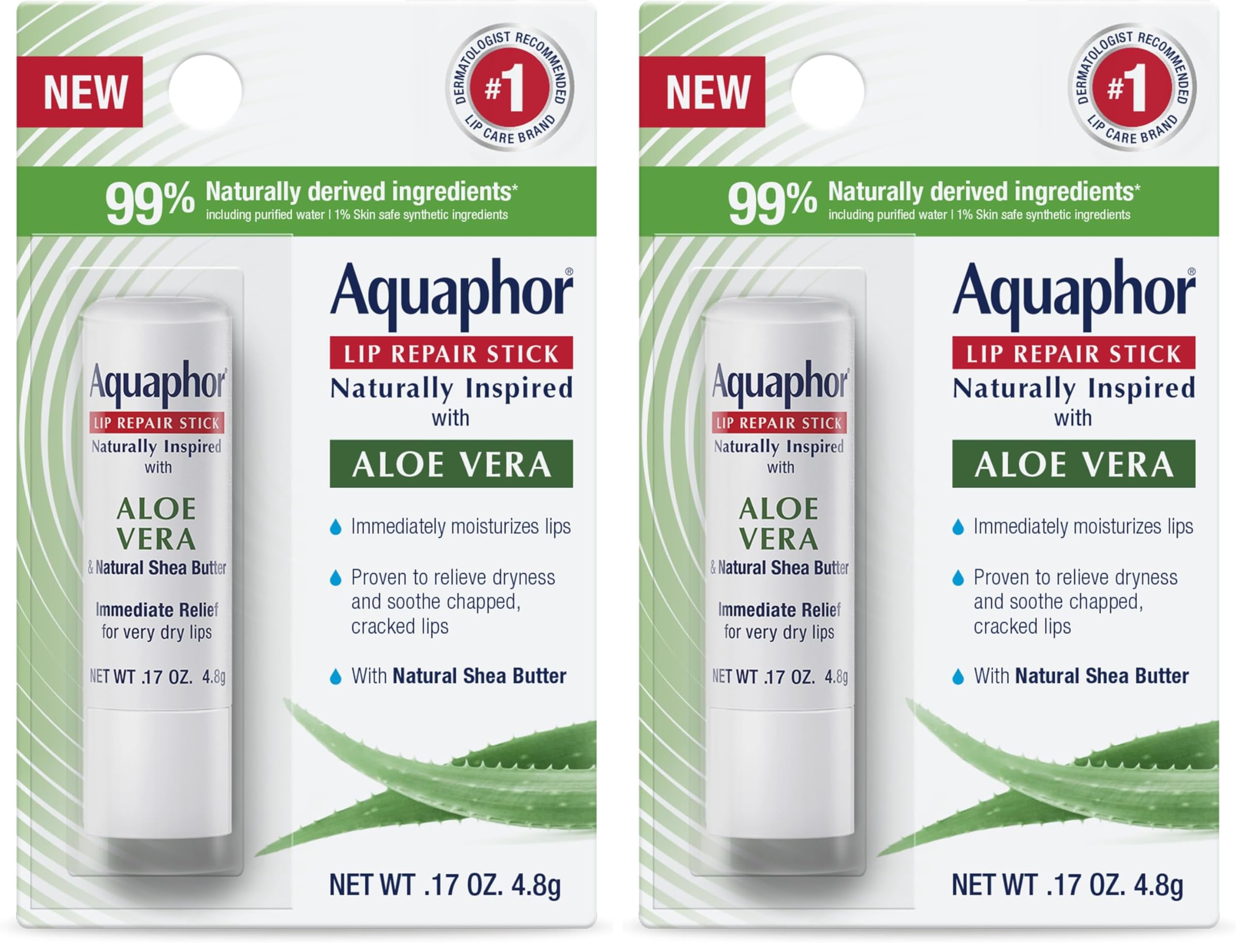 Aquaphor Naturally Inspired Lip Repair Stick with Aloe Vera and Natural Shea Butter Hydrating Lip Balm Immediately Relieves Dryness 0.17 Oz Stick (Pack of 2) 0.17 Ounce (Pack of 2)