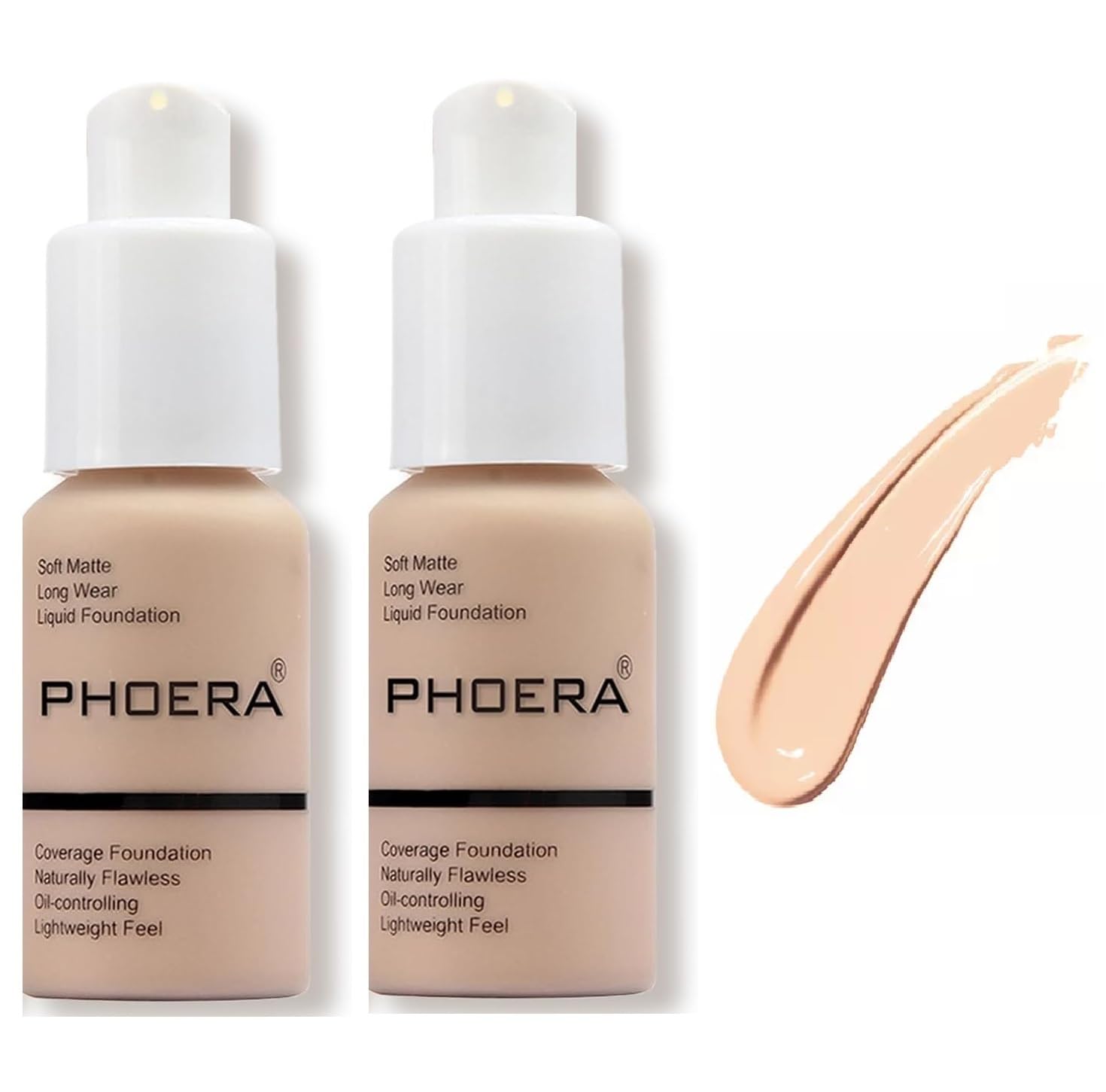 Aquapurity Phoera Full Coverage Foundation Soft Matte Oil Control Concealer 30ml Long Lasting Flawless Cream Smooth (2 PCS 102 NUDE) 2 PCS 102 NUDE 1 count (Pack of 1)