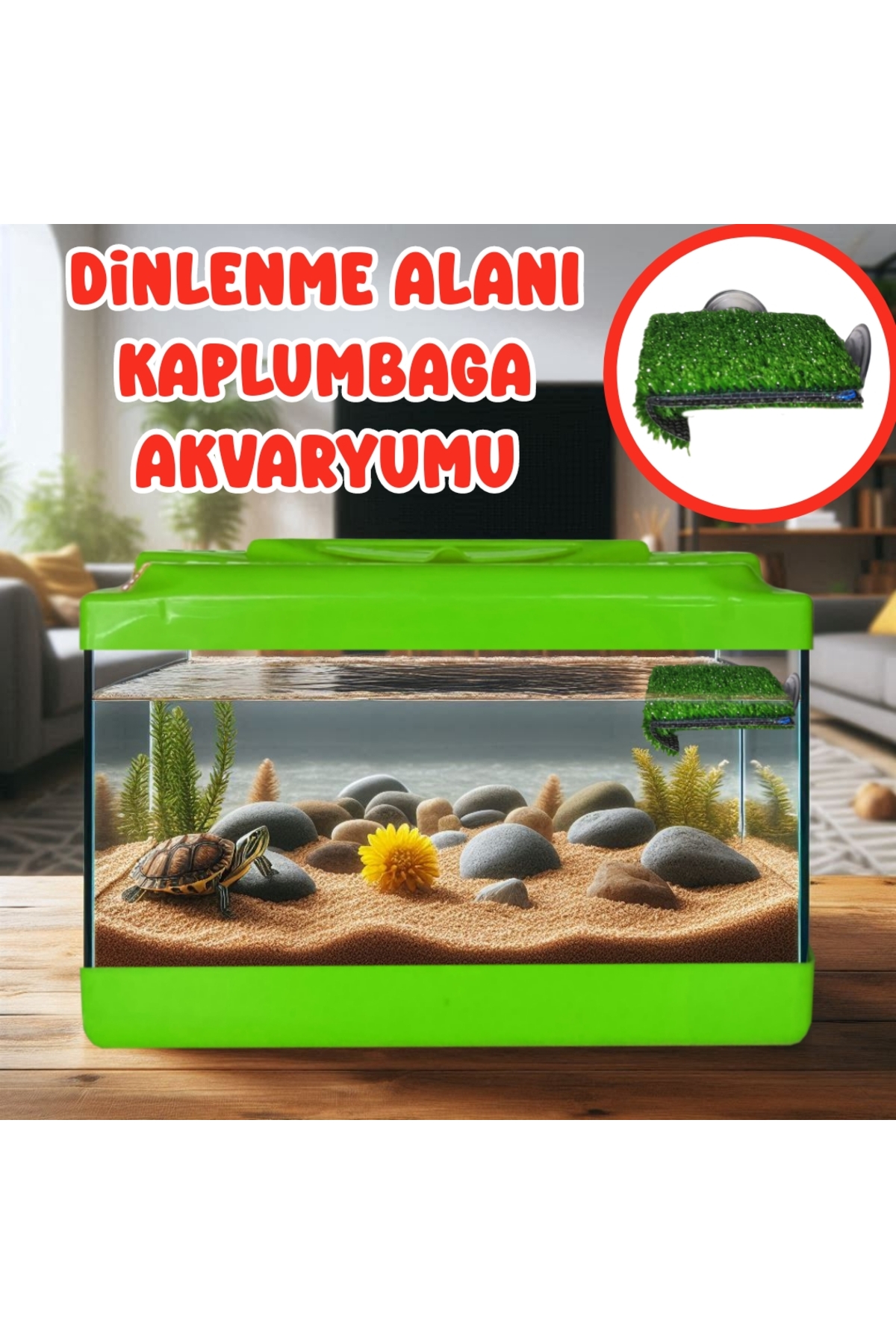 • Dinlenme Alanli Büyük Kaplumbaga Akvaryumu Full Camdir.
