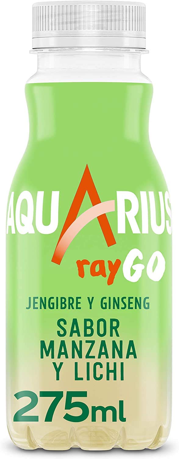 Aquarius Raygo Ginger Ginseng Apple Lychee is a delicious and refreshing drink with root extract. Low in calories and a source of vitamin C as well as minerals like magnesium and manganese, it helps you sustain your energy throughout the day. Gluten-free, lactose-free, and suitable for vegans. Enjoy a refreshingly cold Aquarius Raygo anywhere, thanks to its compact 275ml bottle. Made with up to 30 plant-based material and 25 recycled materials. INGREDIENTS Water, sugar, fructose, minerals: magnesium chloride and manganese sulfate, acids: citric acid and malic acid, vitamin C, natural apple, lemon, ginger, and lychee flavorings, ginger extract, ginseng extract, stabilizers: gum arabic and glyceride esters of wood rosin, acidity regulator: sodium citrate, apple, hibiscus, and mollusc extracts. SAFETY WARNING Not applicable See moreAquarius RayGO Gingbre et Ginseng - boisson fonctionnelle goût pozana et lichi - bouteille 275 mlDESCRIPTION DU PRODUIT DESCRIPTION DU PRODUIT Aquarius Raygo Gingembre Ginseng Pomme et Lichi est une boisson délicieuse et rafraîchissante à l'extrait de racines. Faible en calories et source de vitamines C ainsi que des minéraux comme le magnésium et le manganèse, qui vous aident à la libération continue de votre énergie tout au long de la journée. Sans gluten, sans lactose et convient aux végétaliens. Profitez d'un Aquarius Raygo bien froid n'importe où, grâce à sa bouteille compacte de 275 ml. Fabriqué avec jusqu'à 30 de matériau végétal et 25 de matériaux recyclés. INGRÉDIENTS Eau, sucre, fructose, sels minéraux : chlorure de magnésium et sulfate de manganèse, aciduants : acide citrique et acide malique, vitamine C, arômes naturels de pomme, citron, gingembre et lichi, extrait de gingembre, extrait de ginseng, stabilisants : gomme arabe et esters glycérides de colophane de bois, correcteur d'acidité Citrate de sodium , extraits de pomme, hibiscus et mélaises. AVERTISSEMENT DE SÉCURITÉ Non applicable Voir plus