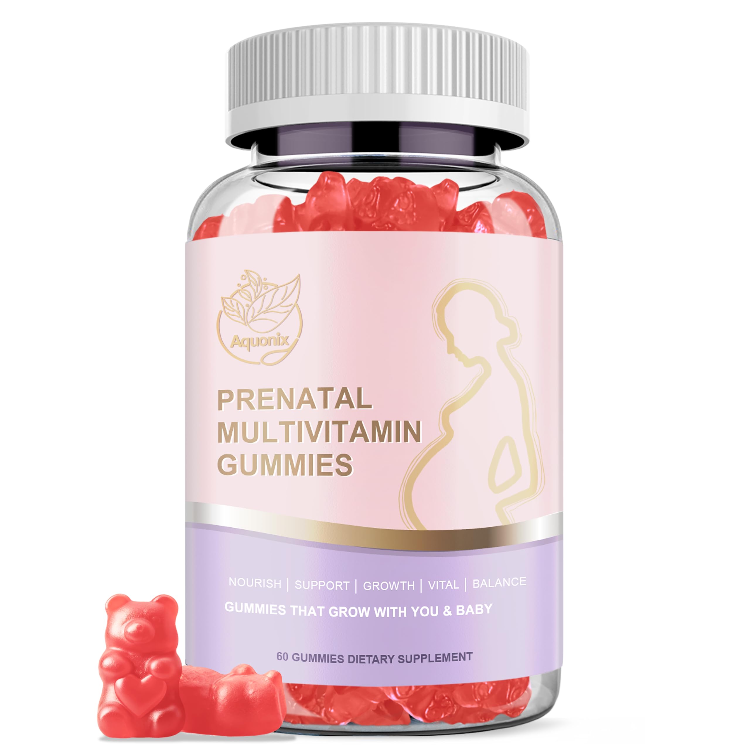 AQUONIX Prenatal Multivitamin Gummies for Women Folic Acid, DHA & More Support for Pregnancy Wellness & Baby s Development Natural Berry Flavor, 60 Gummies