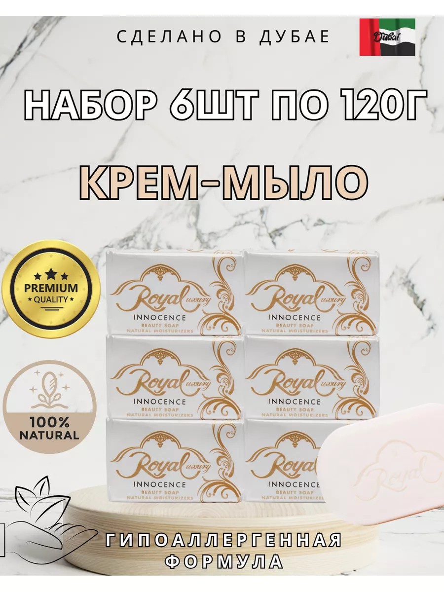 Мыло INDULGENCE(Смягчение)-сладкий аромат, набор 6шт х 120 гр,LUXURY (Роскошь)-аромат магнолии, набор 6шт х 120 гр,DESERT ROSE (роза пустыни)-набор 6шт х 120 гр, MIRAGE (Мираж)-удовое дерево, набор 6шт х 120 гр,VIBRANCE(Резонанс)-свежий цветочный, набор 6шт х 120 гр; Sweet Lily (сладкая лилия), набор 6 шт х 120гр; SENSUAL ORCHID (Чувственная орхидея), набор 6шт х 120гр; INNOCENCE (Невинность), набор 6шт х 120гр от арабского бренда ROYAL , было специально разработано для использования всей семьей. Оно не содержит химических добавок, отдушек, красителей. Регулярное использование мыла позволяет сделать кожу не только чистой, но и в достаточной мере увлажнить ее.Преимущества мыла: отсутствие животных жиров, спиртов, химических ингредиентов, агрессивно действующих на кожу; подходит для ежедневного ухода за кожей любого типа; не сушит, не вызывает раздражения; обеспечивает увлажнение и смягчение; не размокает при контакте с водой; легко пенится, полностью смывается, не оставляя ощущения пленки; биоразлагаемый состав безопасный для экологии.В состав мыла входит глицерин, способствующий удержанию влаги на поверхности кожи, тем самым обеспечивая восстановление гидробаланса; молочный крем, насыщающий питательными веществами и обеспечивающий комфорт после умывания. Ароматическая композиция специально разработана европейскими парфюмерами, придает мылу ненавязчивый приятный аромат.Туалетное мыло Royal и Silk изготовлено из 100% растительных масел, природных увлажнителей и качественного парфюма. Это лучшее от природы и науки. Мягкая, идеально сбалансированная формула мыла Royal и Silk, основой которого являются ценнейшие натуральные масла, позволяет применять его в качестве туалетного мыла для ежедневных гигиенических процедур. Благодаря молочному крему, входящему в его состав, кожа после умывания не нуждается в дополнительном увлажнении.Имеет превосходный нейтральный аромат, не содержит спирта. Прекрасно подходит для нежного очищения рук, лица, тела и волос.