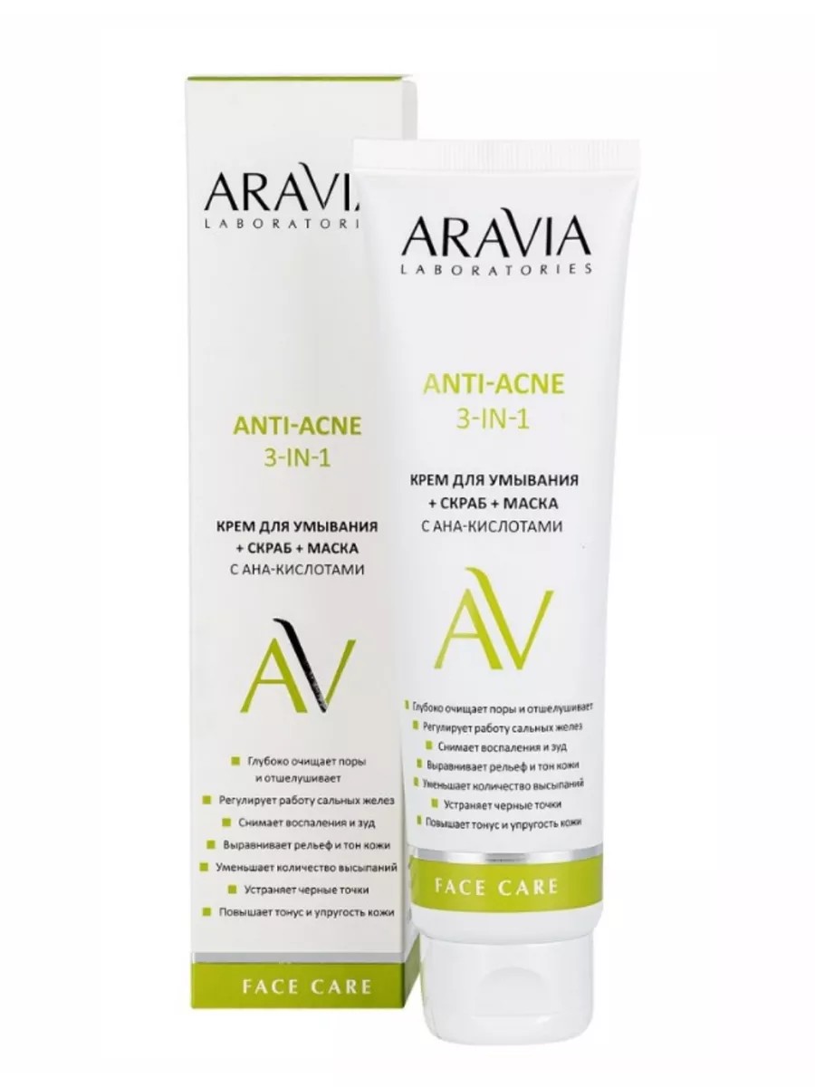 Аравия красота Крем для умывания+скраб+маска с aha-кислотами 3-in-1 100 мл