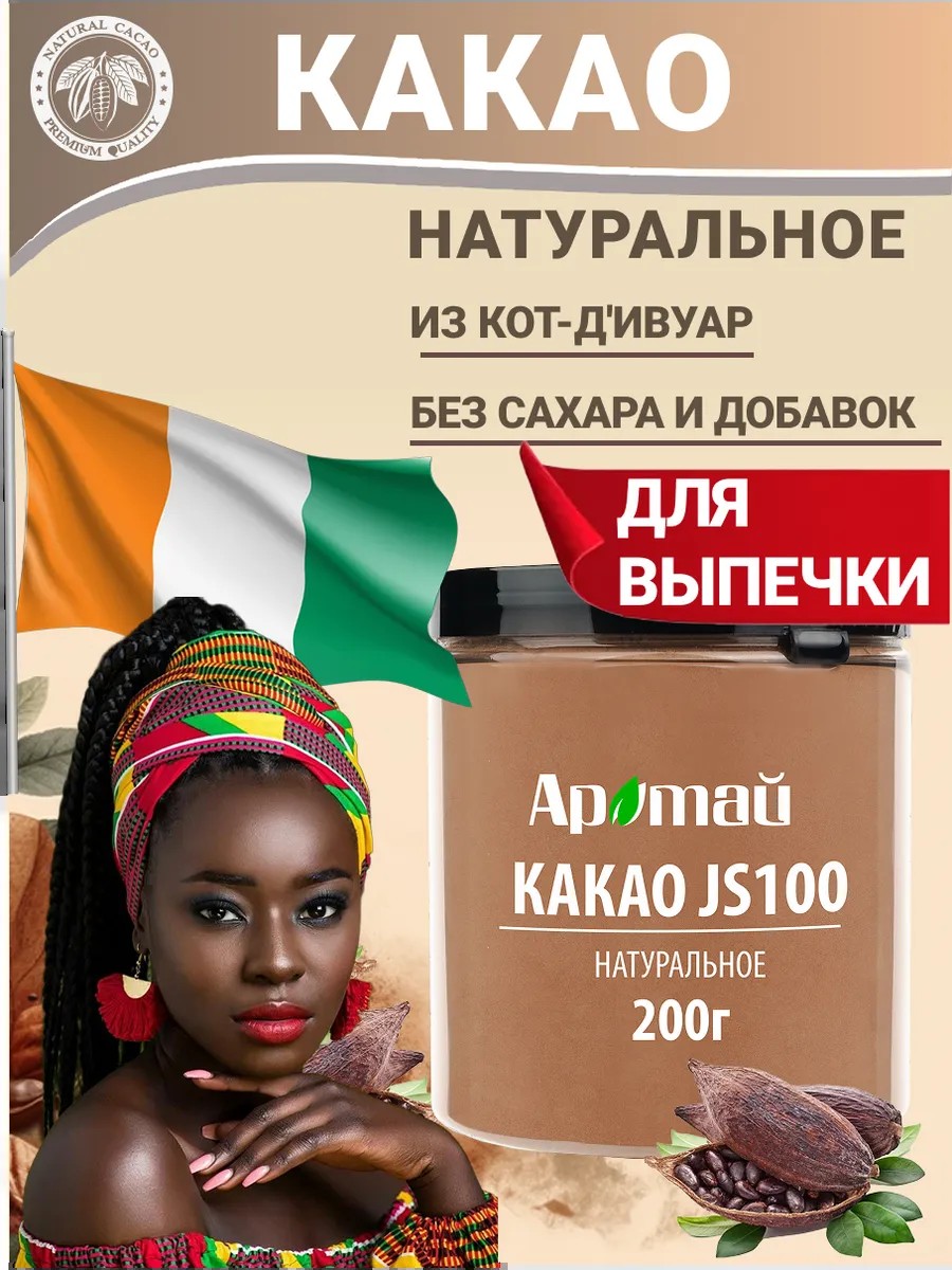 Аратай Какао порошок натуральный неалкализованный, 200 гр