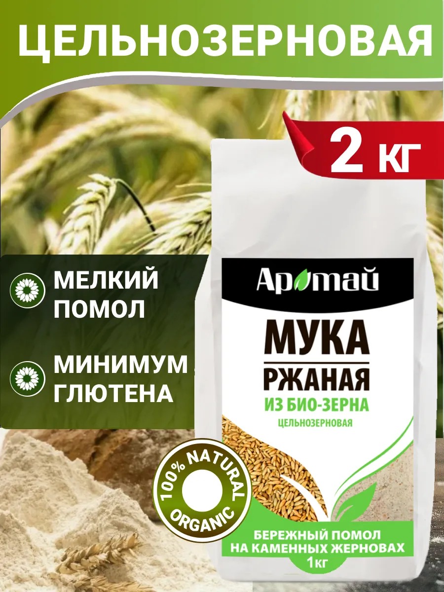 Аратай Мука ржаная цельнозерновая из био зерна, 2 кг