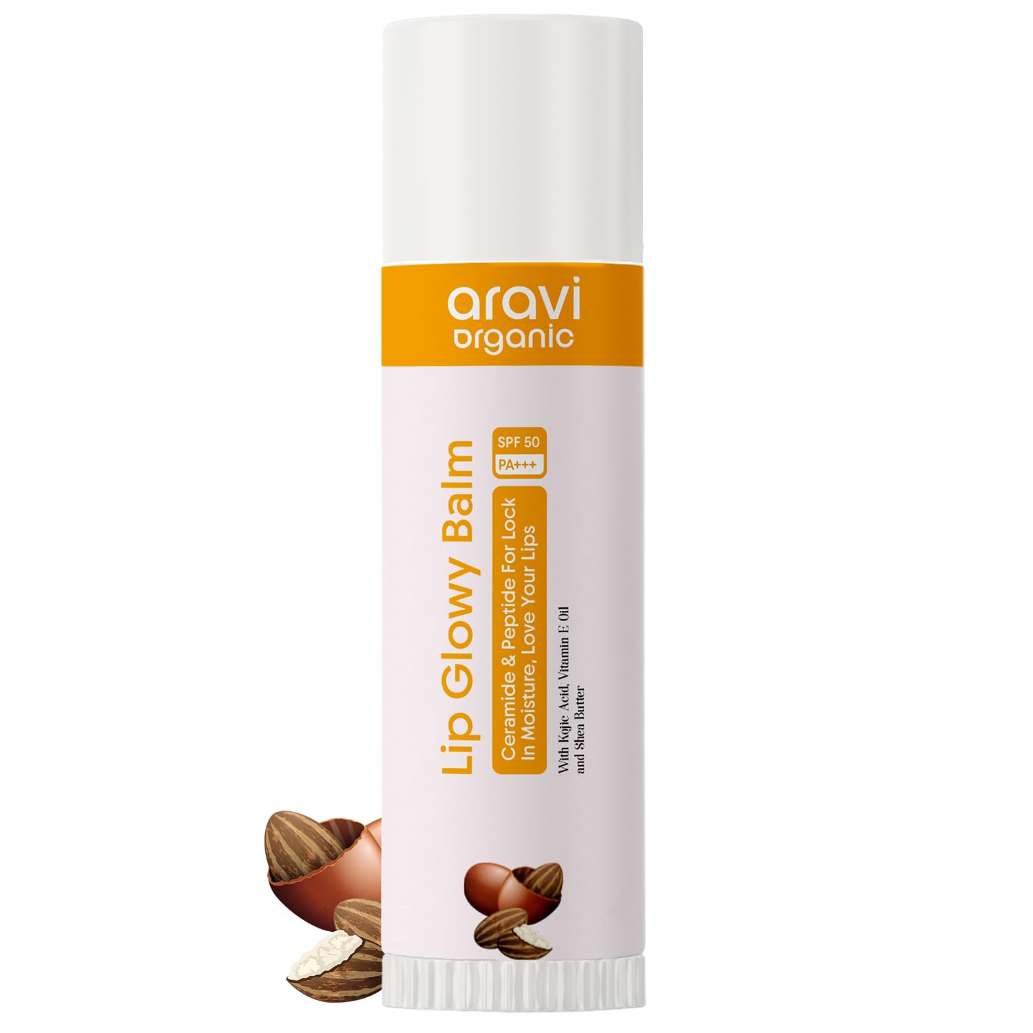 Aravi Organic Lip Glowy Balm With SPF 50 PA+++ & Kojic Acid - Ceramide & Peptide - 0.1 FL Oz / 5gm