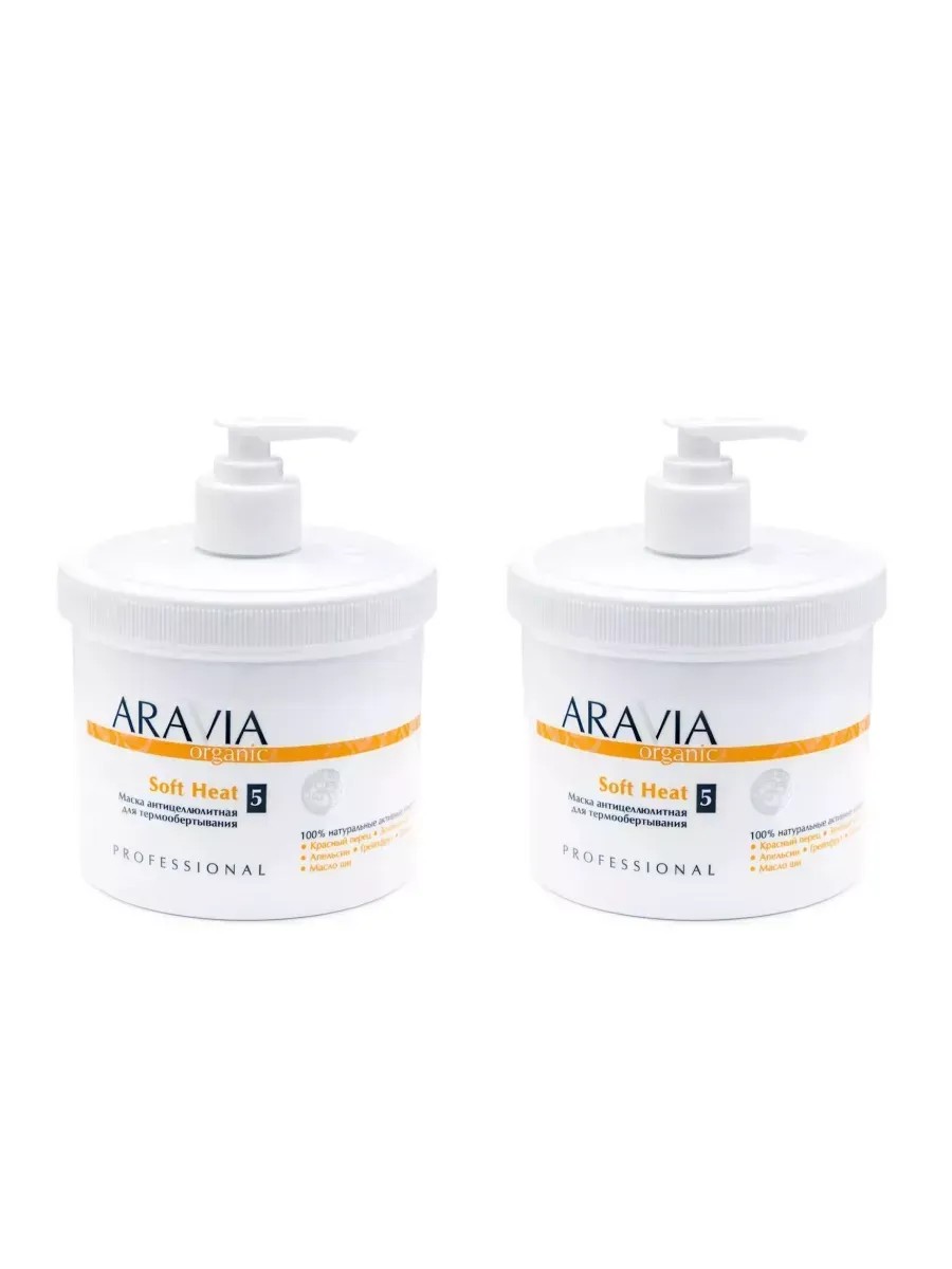 Aravia Маска антицеллюлитная для термообертывания Soft Heat 550 мл. Антицеллюлитная маска для кожи тела с мягким термоактивным эффектом. Высокоактивный натуральный комплекс органических экстрактов растений ускоряет обменные процессы, выводит токсины и избыточную жидкость, позволяет значительно уменьшить проявления целлюлита. Насыщает кожу минералами и витаминами, оказывает укрепляющее и подтягивающее действие. Назначение: процедура обертывания. Рекомендуется при проблемах: целлюлит 1-3 стадии, локальные жировые отложения. Состав: Aqua, Glycerin, Caprylic/Capric Triglyceride, Cetearyl Alcohol, Potassium Cetyl Phosphate, Butylorospermum Parkii (Shea Butter), Glyceryl Stearate, Ceteareth-20, Caffeine, Urea, Organic Lycium Barbarum Fruit Extract, Organic Camelia Sinensis Leaf Extract, Taraxacum Officinale (Dandelion) Extract, Hedera Helix (Ivy) Extract, Organic Citrus Grandis Extract, Organic Citrus Aurantium Dulcis Fruit Extract, Organic Zingiber Officinale (Ginger) Root Extract, Capsicum Annuum Extract, Parfum, Sodium Polyacrylate, ВНТ, Tocopheryl Acetate, Phenoxyethanol (and) Methylparaben (and) Ethylparaben, Propylparaben.