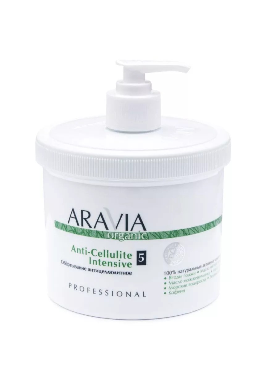 Anti-cellulite wrap is recommended for problem areas of the body. Active ingredients promote increased microcirculation, accelerate metabolic processes in skin cells, and remove waste and toxins. Organic goji berries improve the skin's natural defenses, its elasticity and turgor, stimulate skin regeneration, and increase resistance to negative environmental factors. A balanced complex of marine extracts and caffeine enhances lipolysis by stimulating beta receptors of adipocytes, promoting weight loss and cellulite reduction. Purpose: wrap procedure. Effect: anti-cellulite, lipolytic, regenerating. Recommended for use: cellulite stages 1-4, congestion, swelling. Directions for use: Recommended courses of 10 procedures. During the wrapping stage (5), apply a thick layer of the product to prepared skin. Cover with stretch film and a blanket. Leave on for 15-20 minutes. Rinse off any remaining residue with water and wipes. This professional product is designed for comprehensive solutions to body skin concerns. For maximum results, we recommend combining this treatment with other professional products from the ARAVIA Organic line. Body care program "Graceful silhouette" Soft cleansing lotion "Gentle Cleansing" Cream-scrub "Silk Care" Anti-cellulite activator cream "Thermo Active" Cream for modeling massage "Slim Shape" Anti-cellulite wrap "Anti-Cellulite Intensive" Moisturizing firming cream "Vitality SPA" Ingredients: Aqua, Glycerin, Urea, Propylene Glycol, Caffeine, Organic Camellia Sinensis Leaf Extract, Organic Lycium Barbarum Fruit Extract, Fucus Vesiculosus Extract, Laminaria Saccharina Extract, Camphor, Carbomer, Triethanolamine, Menthol, Abies Sibirica Oil, Juniperus Communis Fruit Oil, Citrus Medica Limonum (Lemon) Peel Oil, DMDM Hydantoin, Iodopropynyl Butylcarbamate.