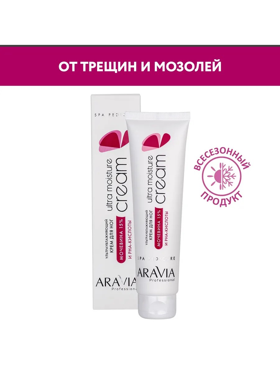 Крем для ног ARAVIA Professional ультраувлажняющий, с мочевиной и PHA - кислотами, 100 мл. Крем для очень сухой кожи ног с эффектом ультраглубокого увлажнения и восстановления. Мочевина в концентрации 15% помогает в решении проблем огрубевшей кожи и гиперкератоза. Эффективно смягчает кожу стоп и голеней, оказывает длительное увлажнение и питание кожи, уменьшая появление трещин и натоптышей. Входящие в состав PHA - кислоты оказывают мягкий отшелушивающий эффект. Крем избавляет от чрезмерной сухости и шелушения, помогает восстановить баланс и целостность кожного покрова. Рекомендуется применять как для ежедневного увлажнения, так и для экстренного восстановления кожи. Состав: Aqua, Urea, Petrolatum, Glyceryl Stearate, Cetearyl Alcohol, Cetyl Palmitate, Butyrospermum Parkii (Shea Butter), Gluconolactone, Glycerin, PEG - 100 Stearate, Isononyl Isononanoate, Dimethicone, Sodium Lactate, Phenoxyethanol, Lactic Acid, Parfum, Methylparaben, BHT, Cellulose Gum, Propylparaben, Ethylparaben. Способ применения: 1. Точечное использование. Нанести небольшое количество крема массажными движениями на проблемные участки до полного впитывания. 2. Питание и восстановление. Нанести небольшое количество крема (тонким слоем) массажными движениями на кожу стоп и голеней до полного впитывания. 3. Глубокое увлажнение и обновление. Нанести небольшое количества крема на кожу стоп и голеней. Сверху наденьте специальные носочки для педикюра или хлопковые носки. Крем можно оставить на 20 - 30 минут или на ночь. Для достижения максимального эффекта рекомендуется наносить крем ежедневно. Крем можно использовать для сухой кожи на локтях