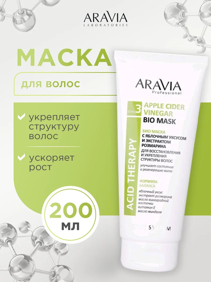 ARAVIA Professional Bio Hair Mask with Apple Cider Vinegar and Rosemary Extract, 200ml.