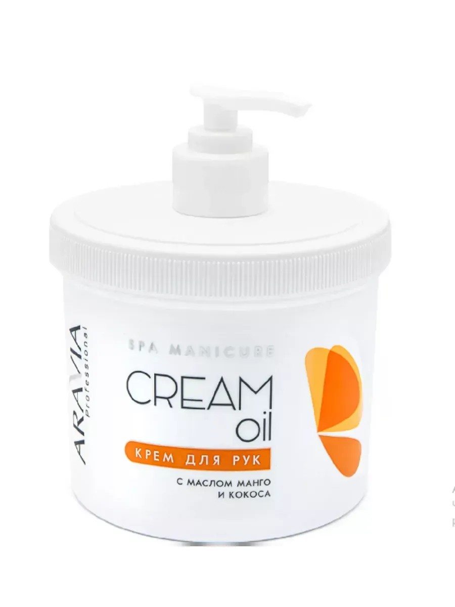 Aravia Hand Cream 550 ml. This cream-oil is designed for a relaxing hand massage at the final stage of a spa manicure. It gently nourishes, soothes, and restores elasticity to the skin of the hands. It strengthens nails and stimulates their growth. Contains natural vegetable oils of coconut, mango, sweet almond, and shea butter. It provides additional protection to the skin of the hands and helps maintain the natural hydrolipidic balance. Apply a small amount of cream to the skin. Massage until completely absorbed. Precautions: Do not apply to broken skin or eyes. If contact occurs, rinse thoroughly with water. Test on a small area of ​​skin before use.