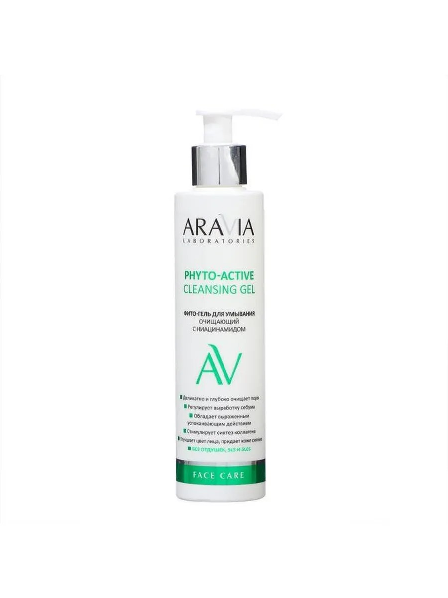 ARAVIA Laboratories Phyto Cleansing Gel with Niacinamide, 200 ml. Phyto cleansing gel with niacinamide gently and deeply cleanses the skin, prevents the negative effects of environmental exposure, and strengthens the protective barrier. Niacinamide regulates sebum production and tightens pores. Relieves irritation, soothes, and softens. Increases elasticity and firmness, slows down the aging process. Improves complexion and fills the skin with energy. Suitable for all skin types, including sensitive. Does not contain SLS and SLES. Recommendations for care: 1-2 times a day for home care. How to use: Lather the gel in your hands, apply to damp skin of the face, neck, and décolleté. Cleanse the skin with light massage movements. Rinse with water. Precautions: Do not apply to broken skin and avoid contact with eyes. In case of contact with eyes, rinse thoroughly with water. Test on a small area of skin before use. Bioactive ingredients: niacinamide, calendula extract, extr Composition: See packaging; Area of use: Décolleté; Skin type: For all skin types; Volume: 200; Type of skin care product: gel; Expiration date: 730; Target audience: Adults;
