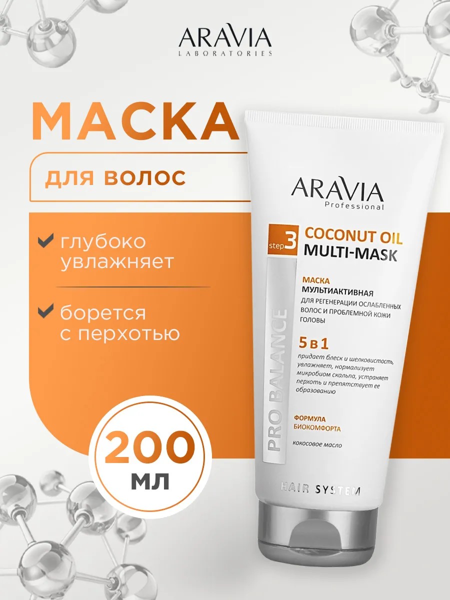 ARAVIA Professional Маска мультиактивная 5 в 1 для регенерации ослабленных волос и проблемной кожи головы 200мл.