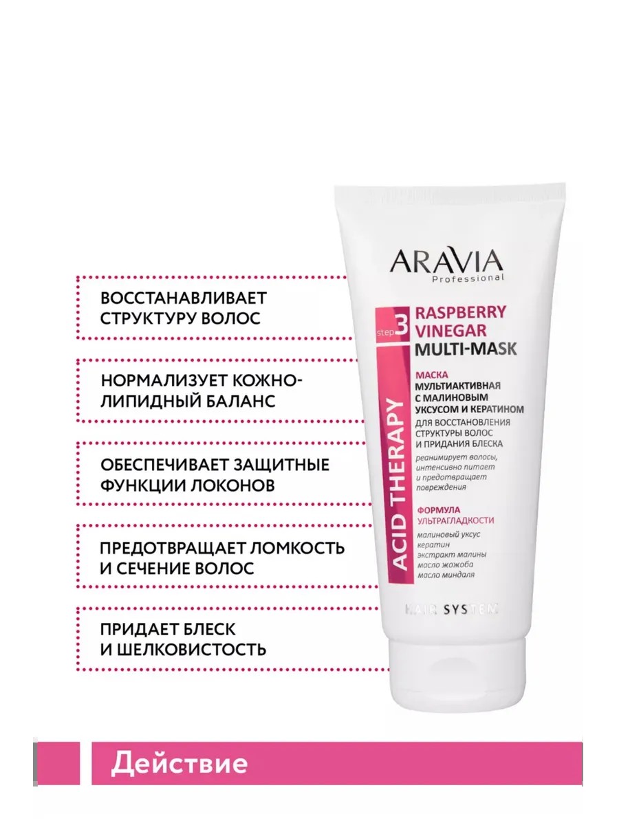 ARAVIA Маска мультиактивная с малиновым уксусом и кератином, 200 мл